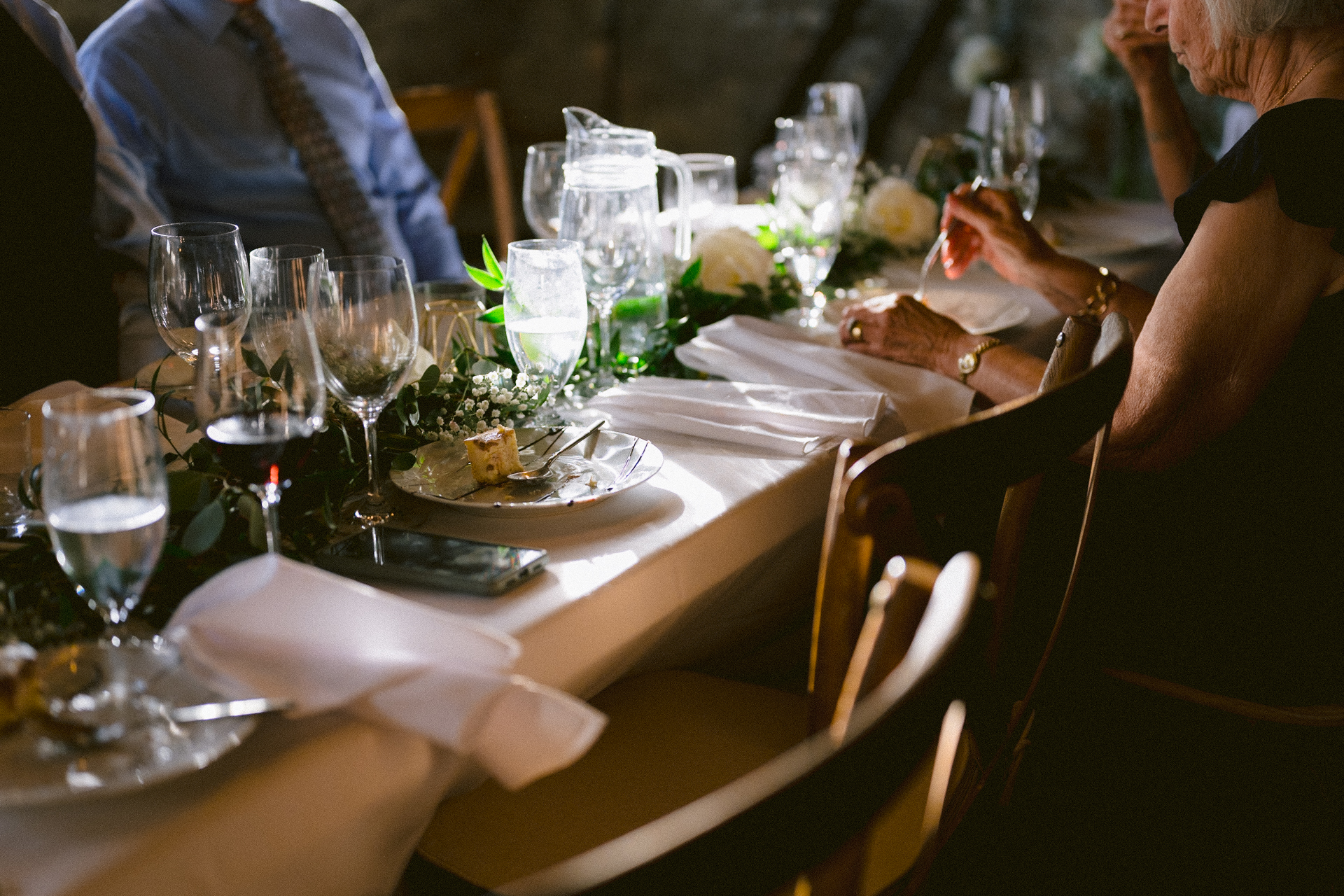Entering “The Byre“, one of the venue’s beautiful spaces. The warm tungsten light bulbs cast a romantic aura. The guests stood up as David and Tara made their grand entrance into the hall. It was a privilege as a Toronto wedding photographer to capture the subtle glances and tender touches that spoke volumes about their love.