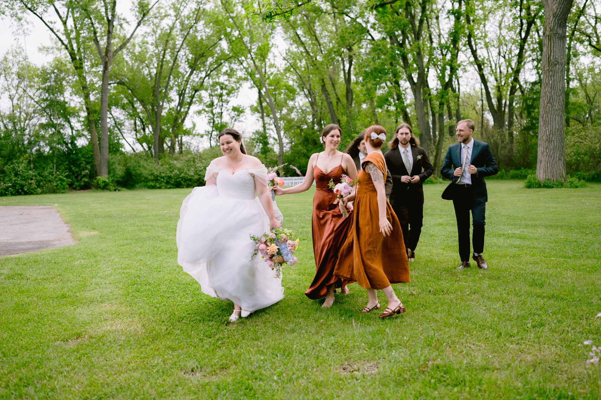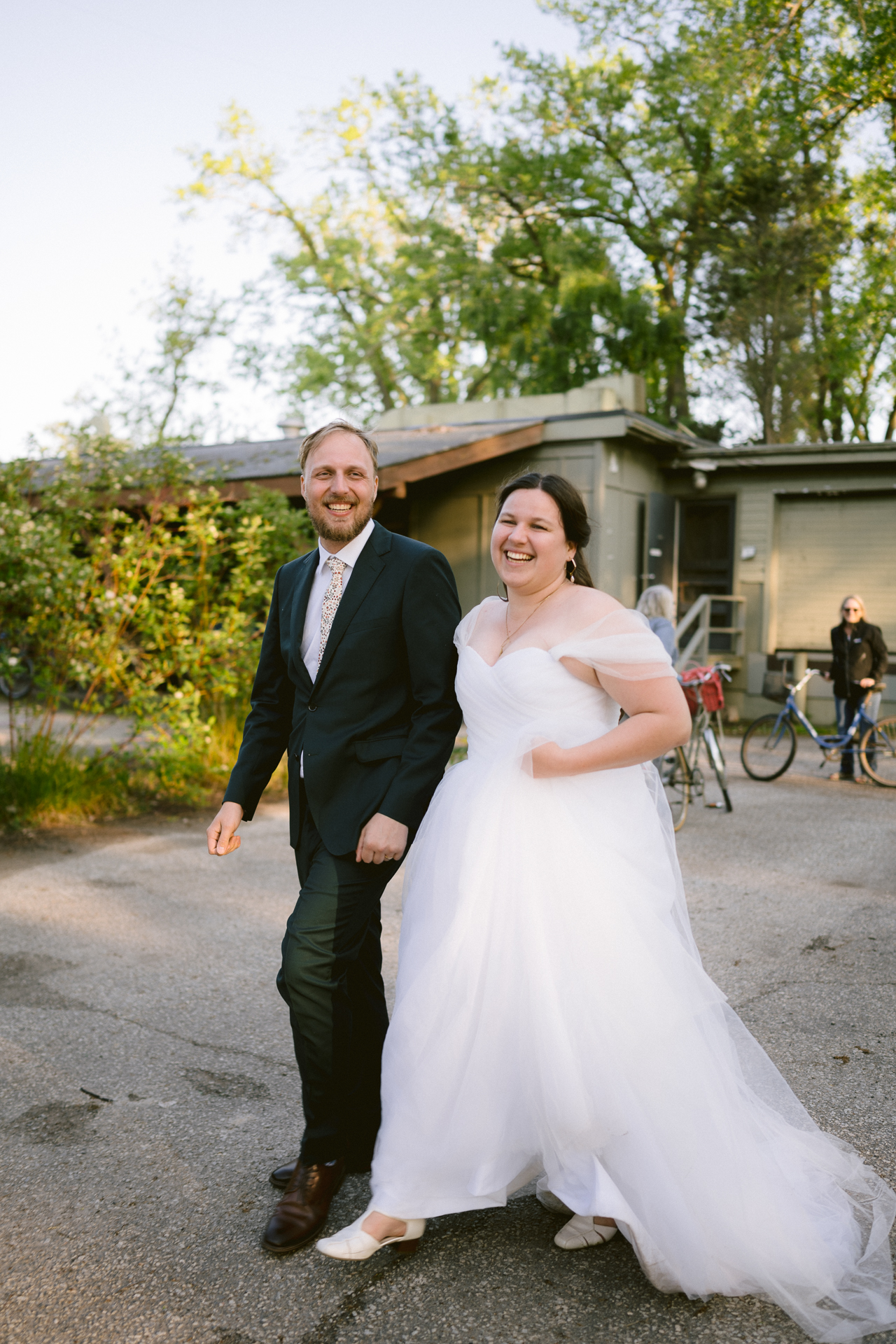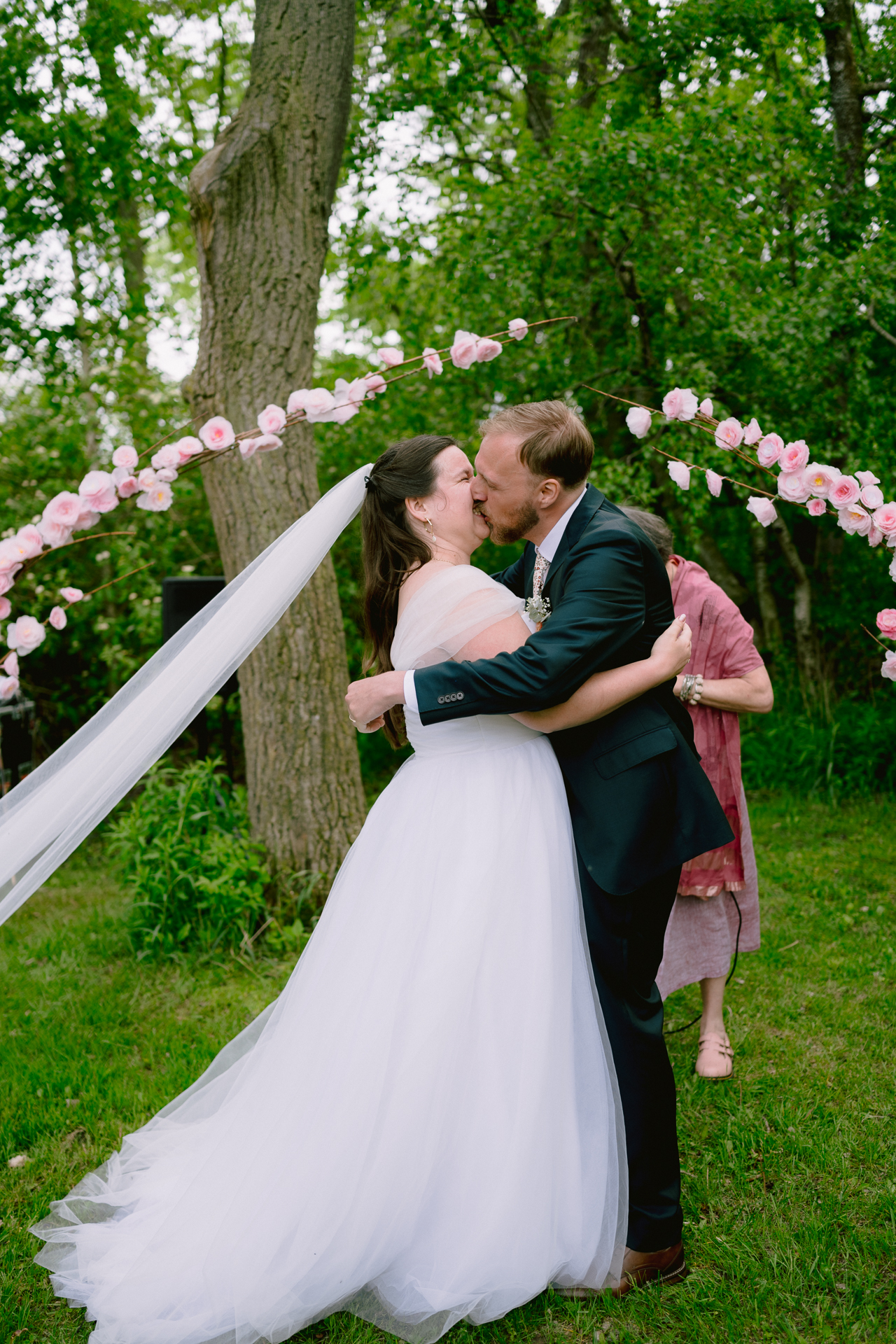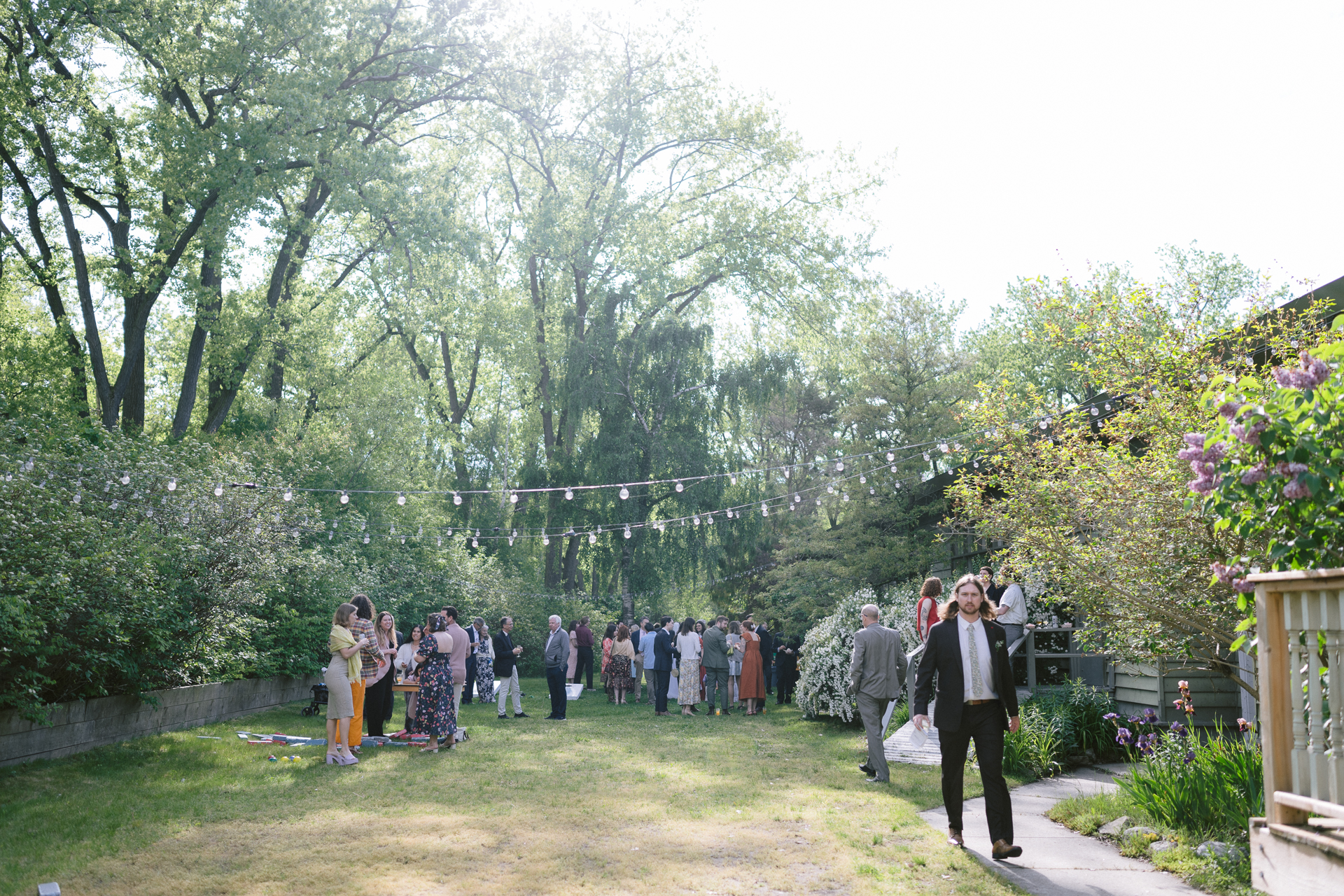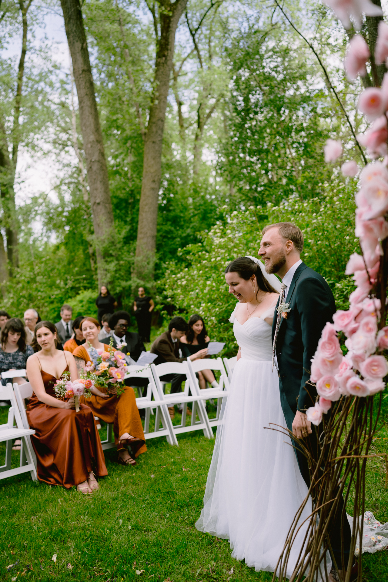With the rain subsiding, Sam and Arie made the brilliant decision to move the ceremony back outdoors. The lush greenery and serene surroundings of Toronto Island provided the perfect backdrop for their intimate celebration. About 80 guests, all eager and excited, gathered to witness the union of these two wonderful people.