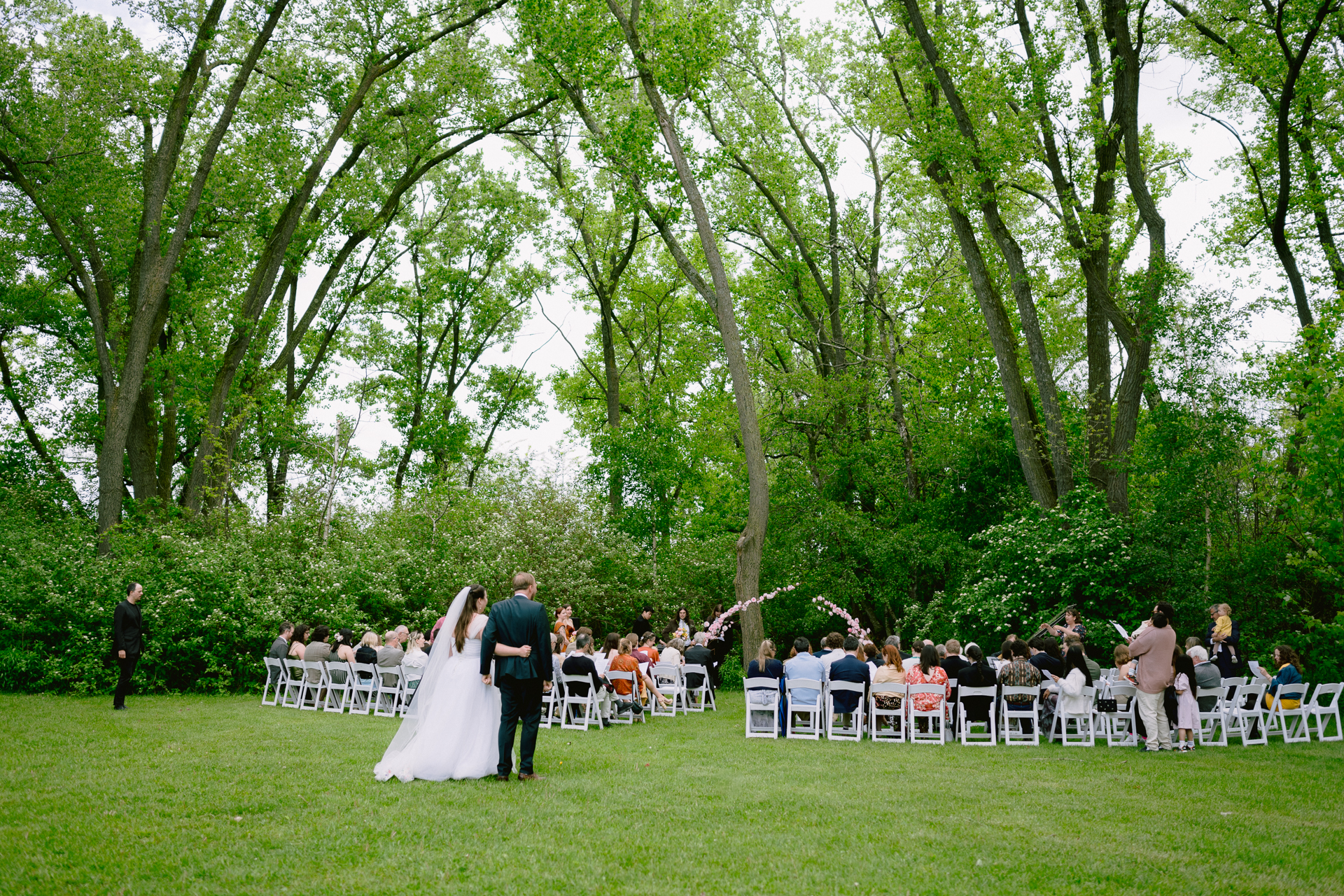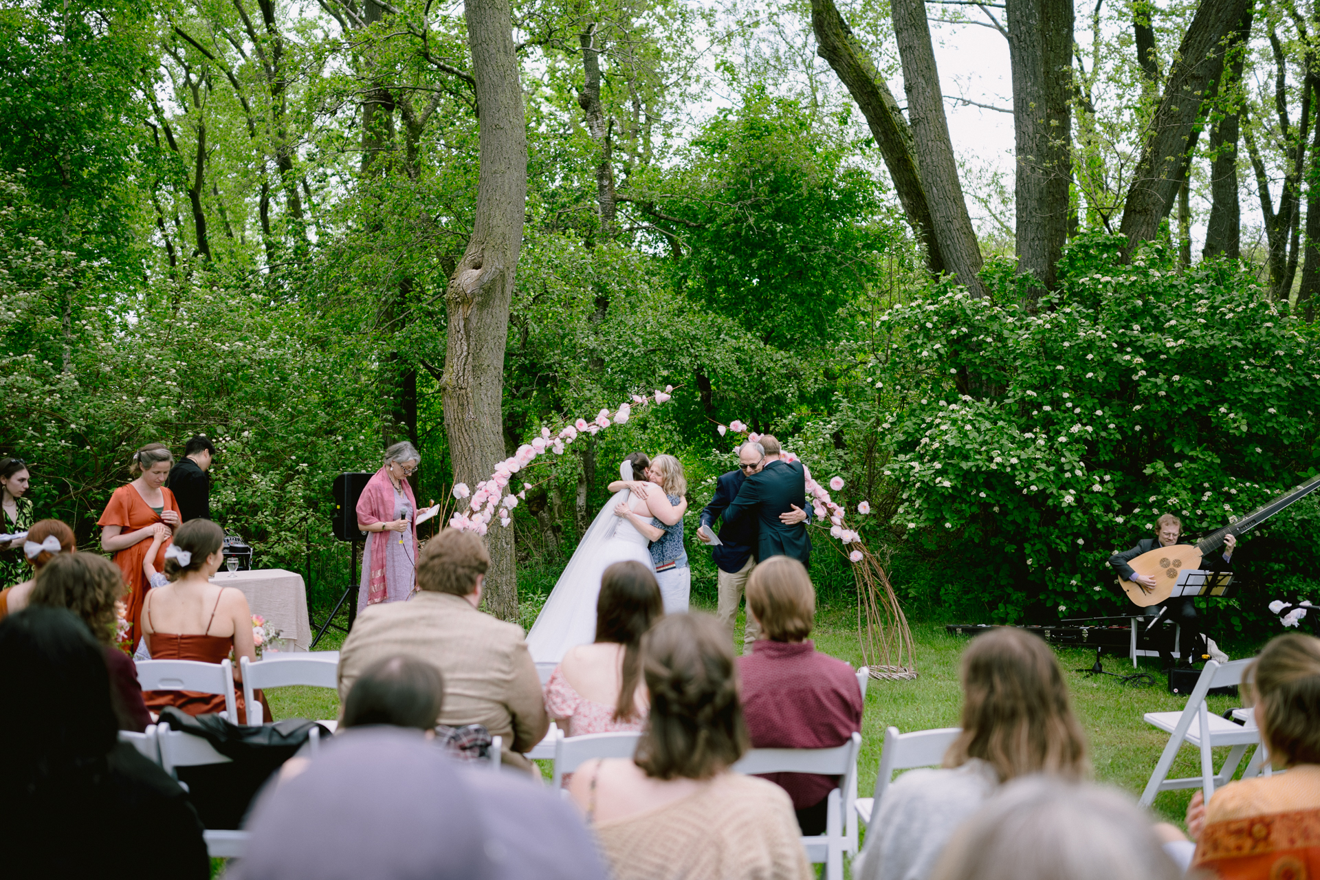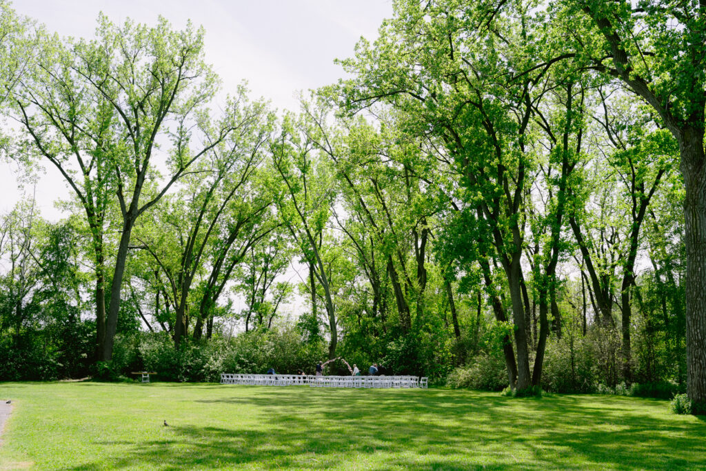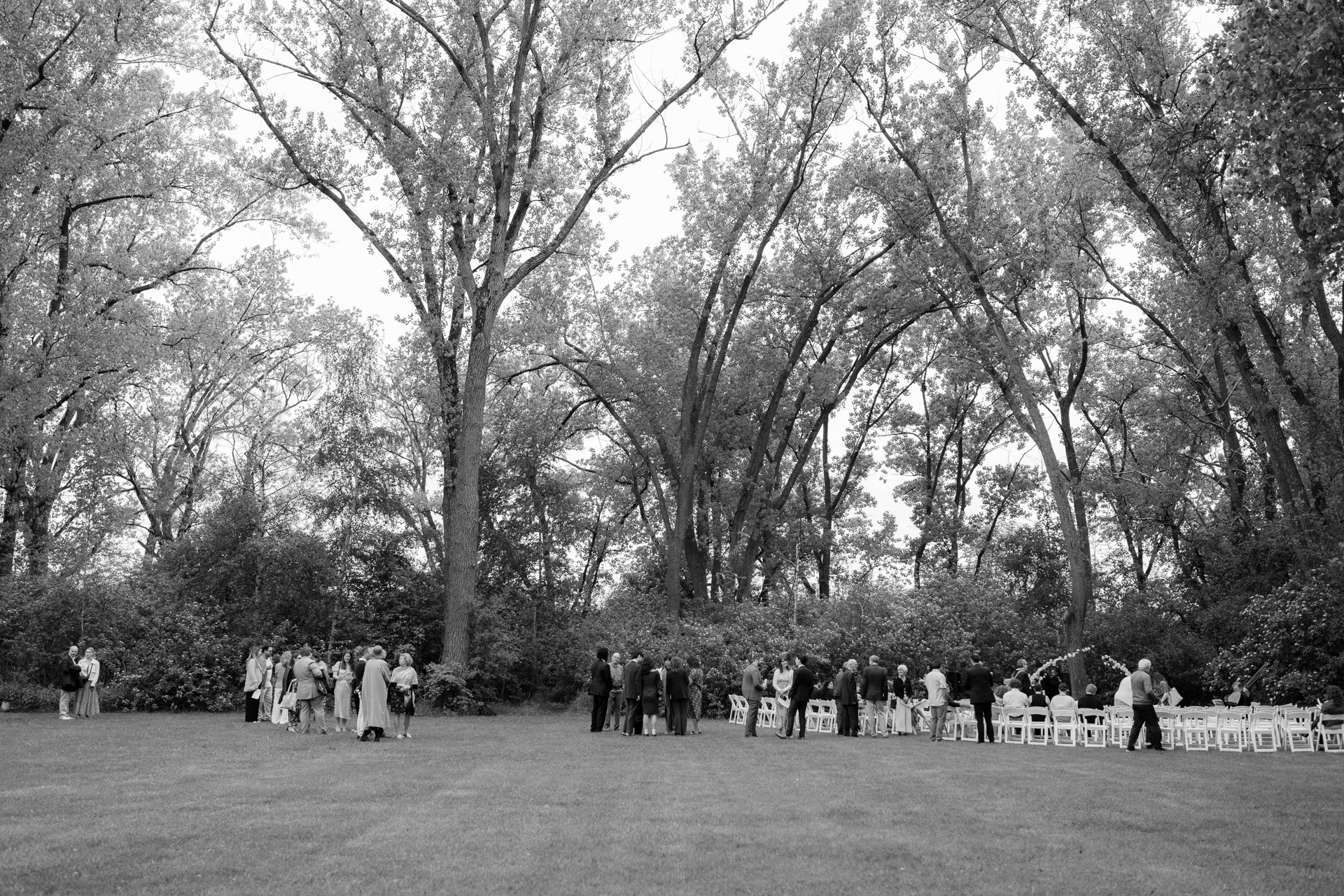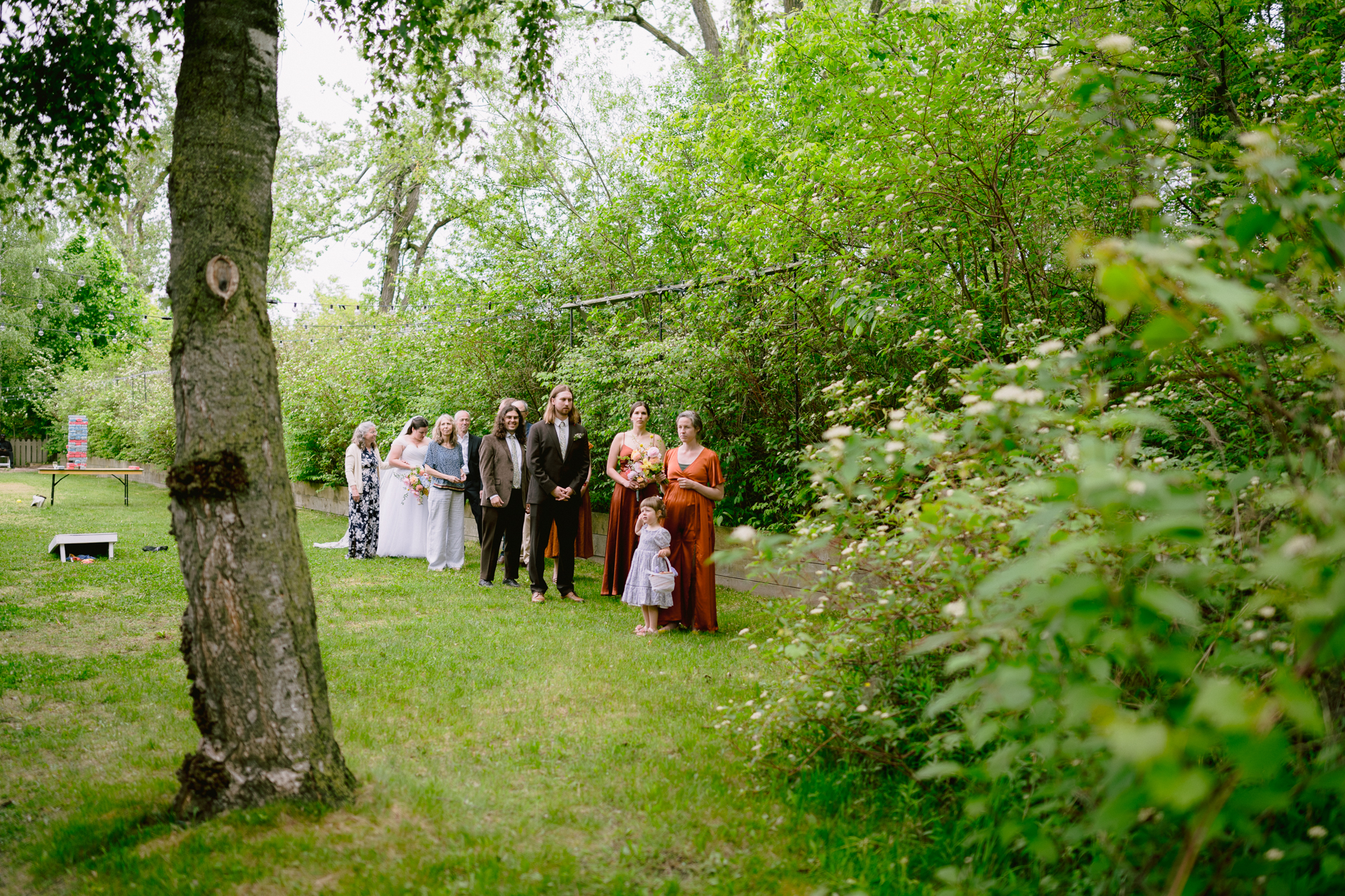 With the rain subsiding, Sam and Arie made the brilliant decision to move the ceremony back outdoors. The lush greenery and serene surroundings of Toronto Island provided the perfect backdrop for their intimate celebration. About 80 guests, all eager and excited, gathered to witness the union of these two wonderful people.