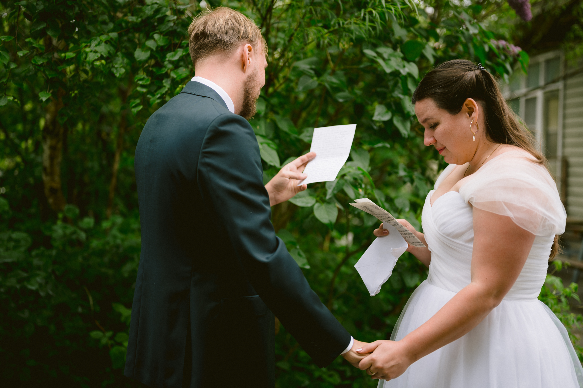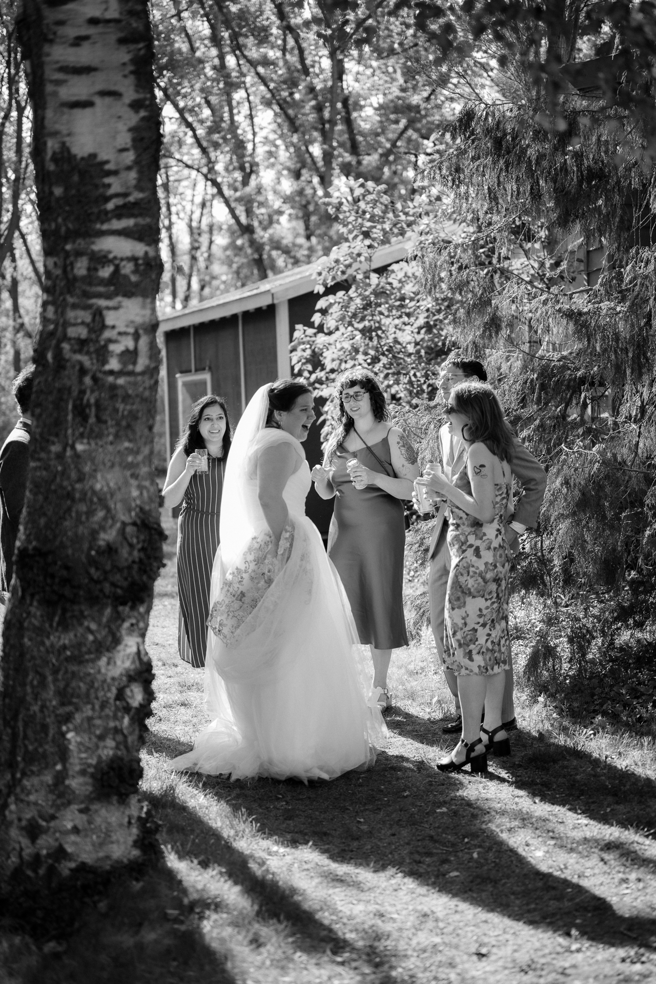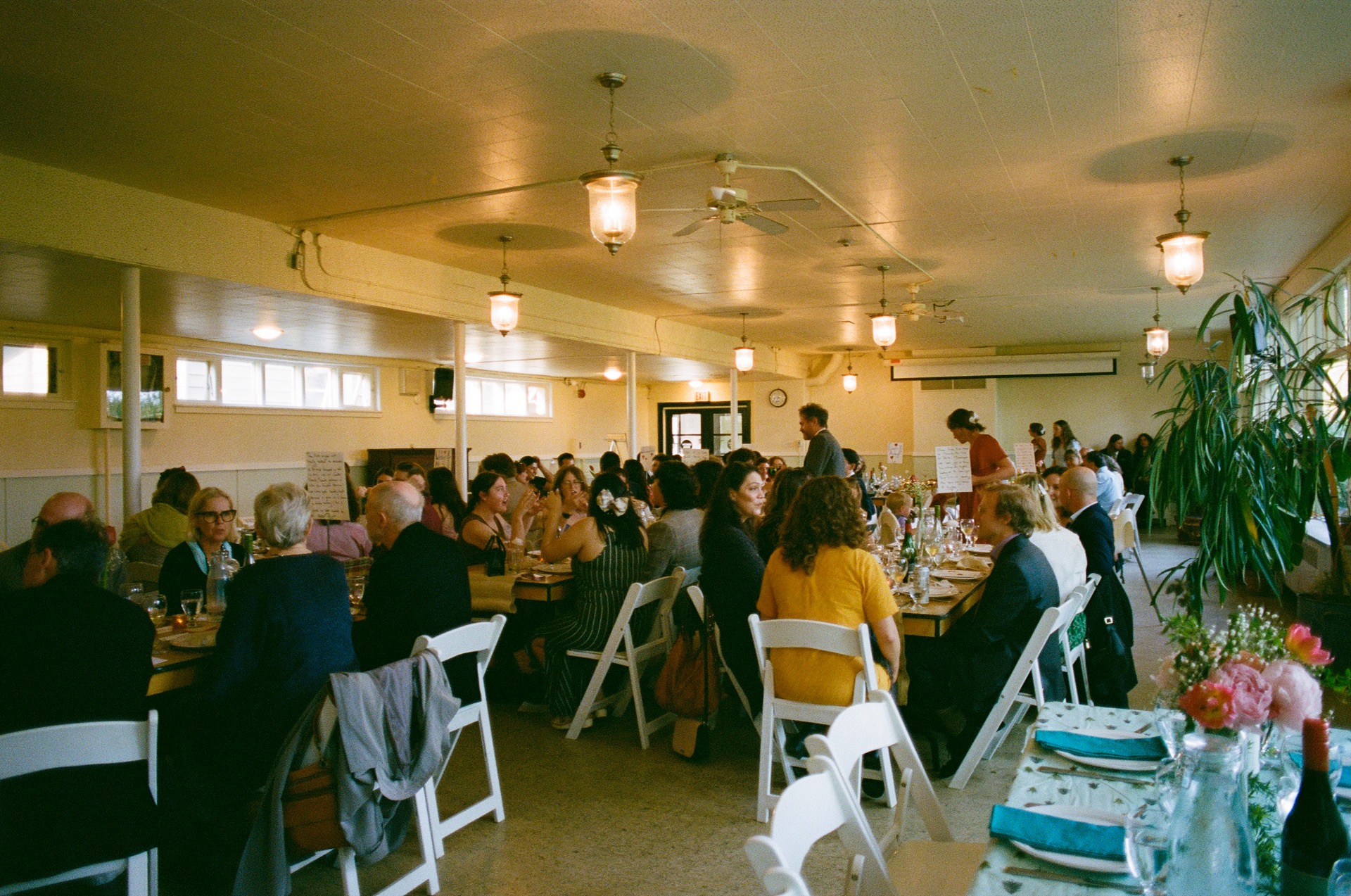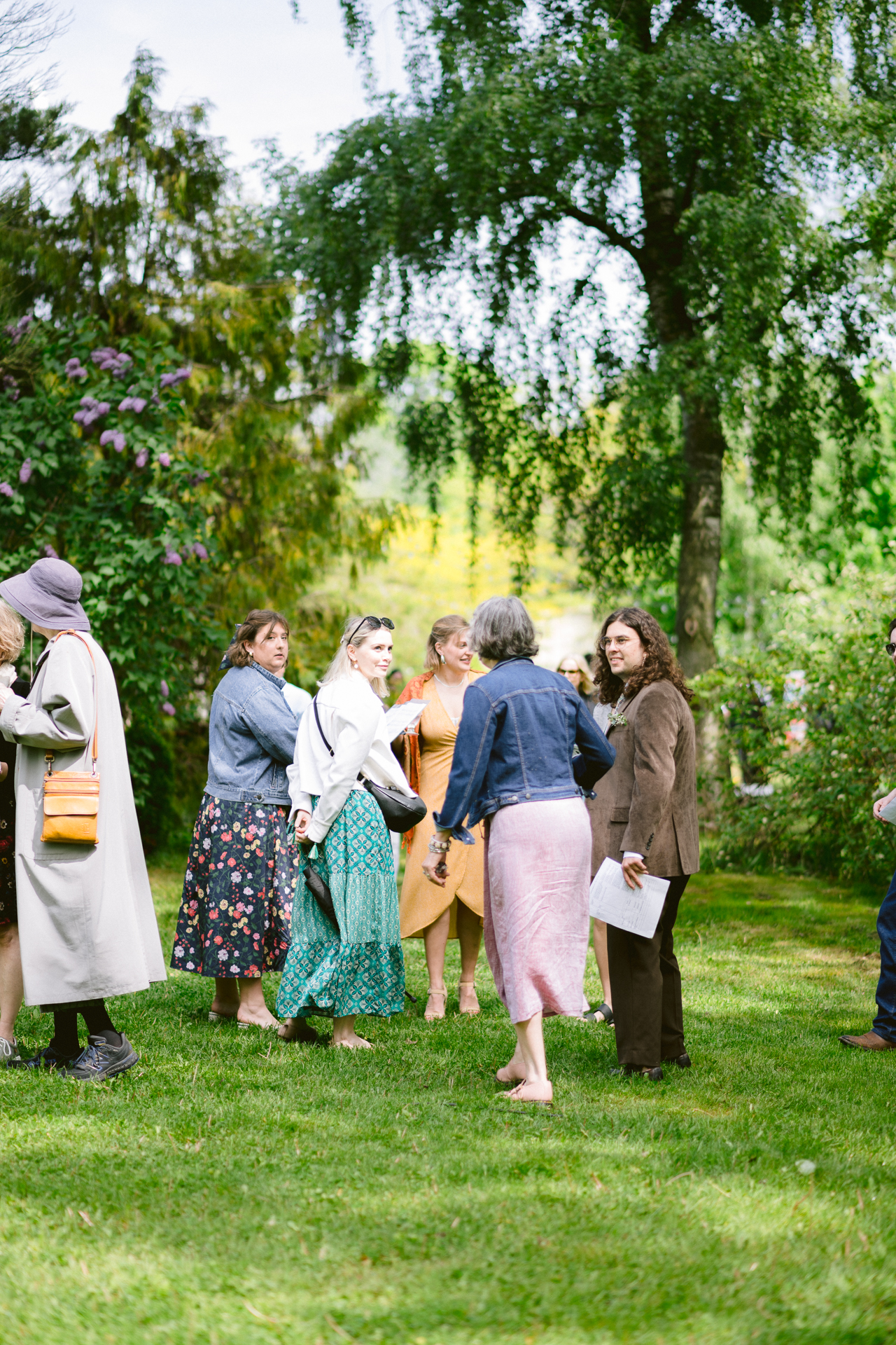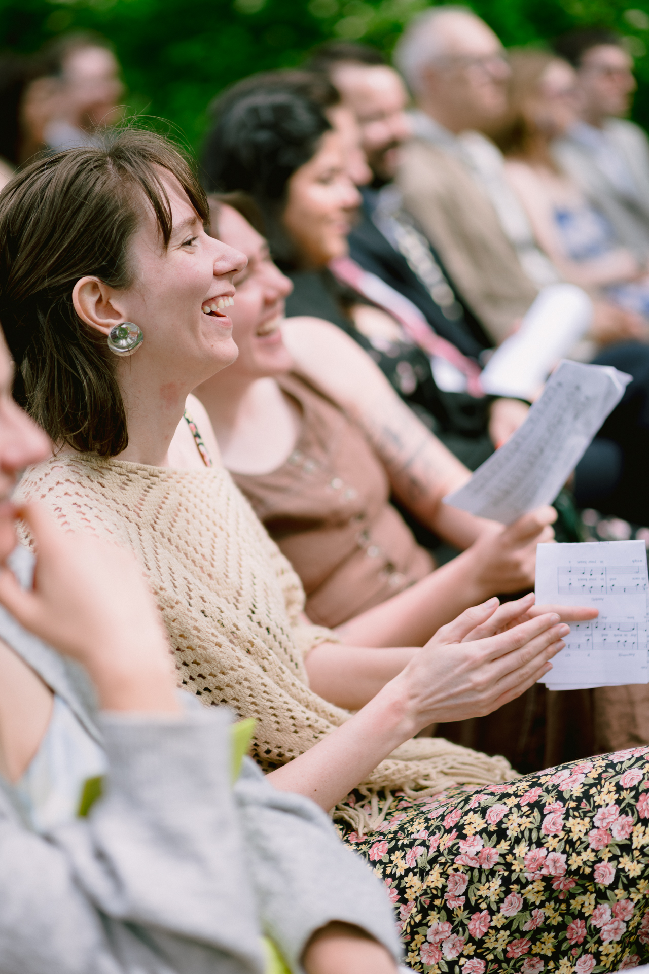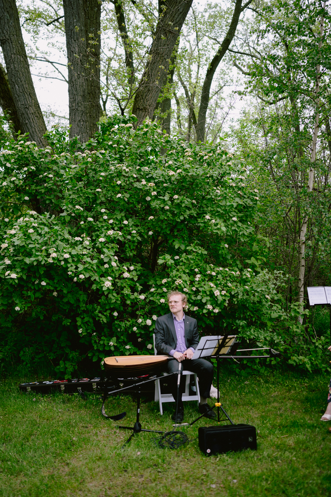 With the rain subsiding, Sam and Arie made the brilliant decision to move the ceremony back outdoors. The lush greenery and serene surroundings of Toronto Island provided the perfect backdrop for their intimate celebration. About 80 guests, all eager and excited, gathered to witness the union of these two wonderful people.