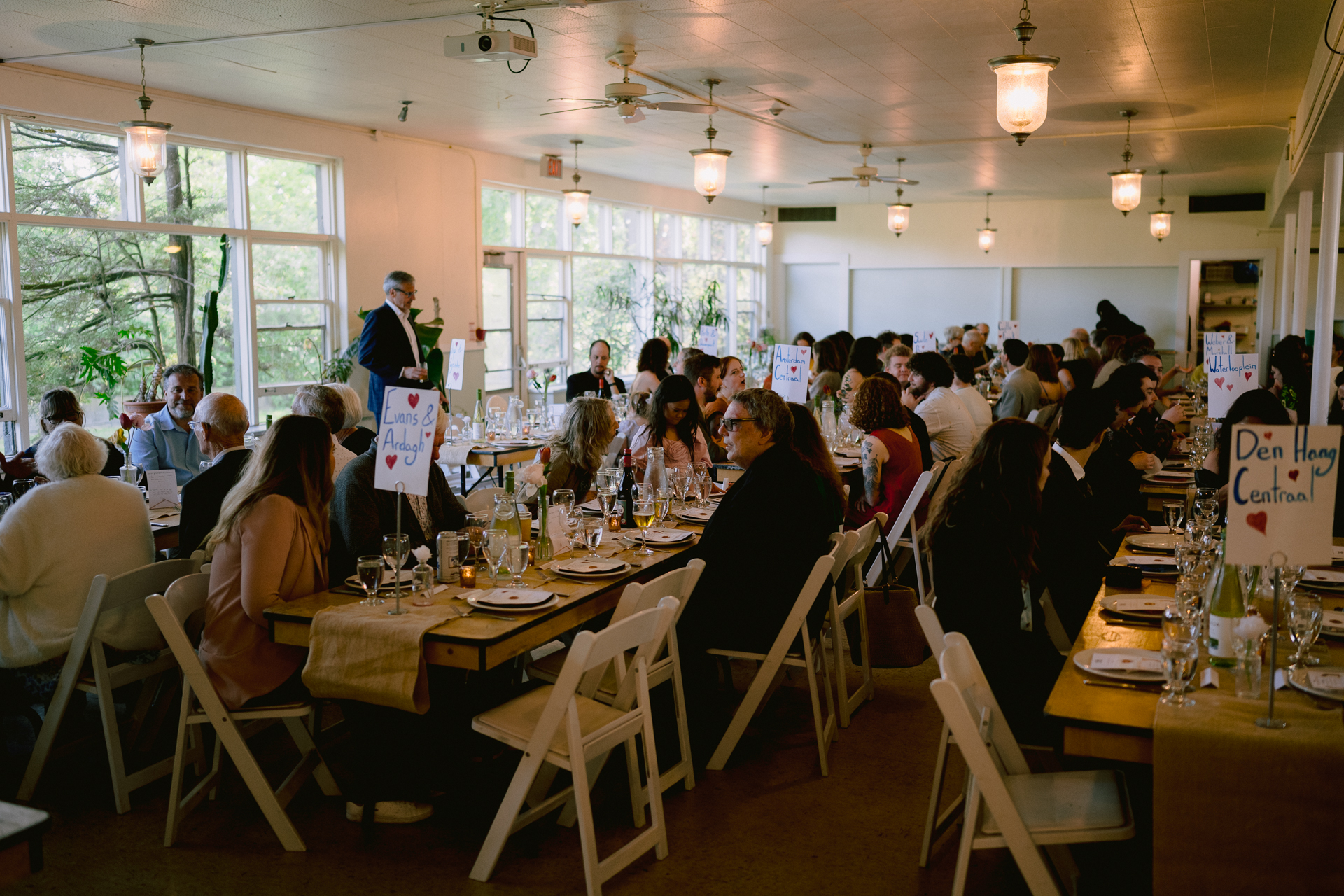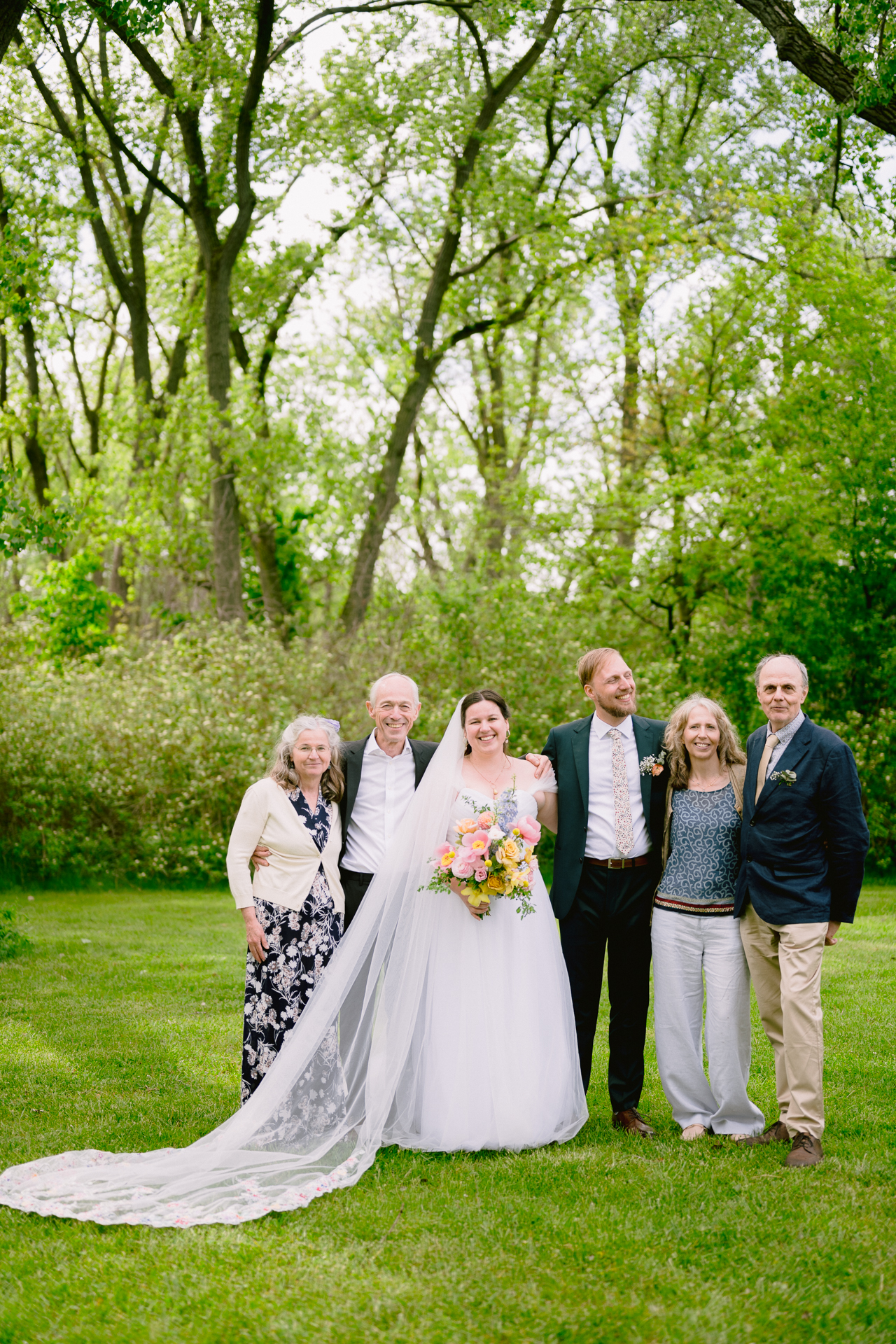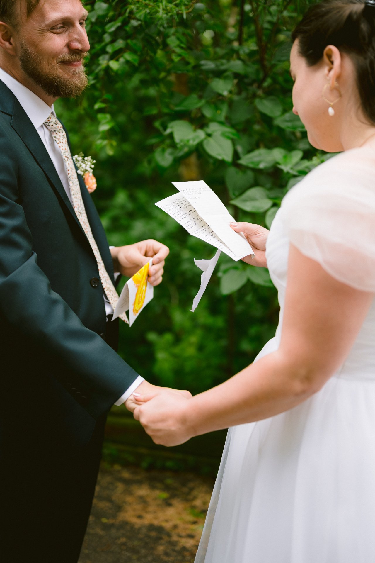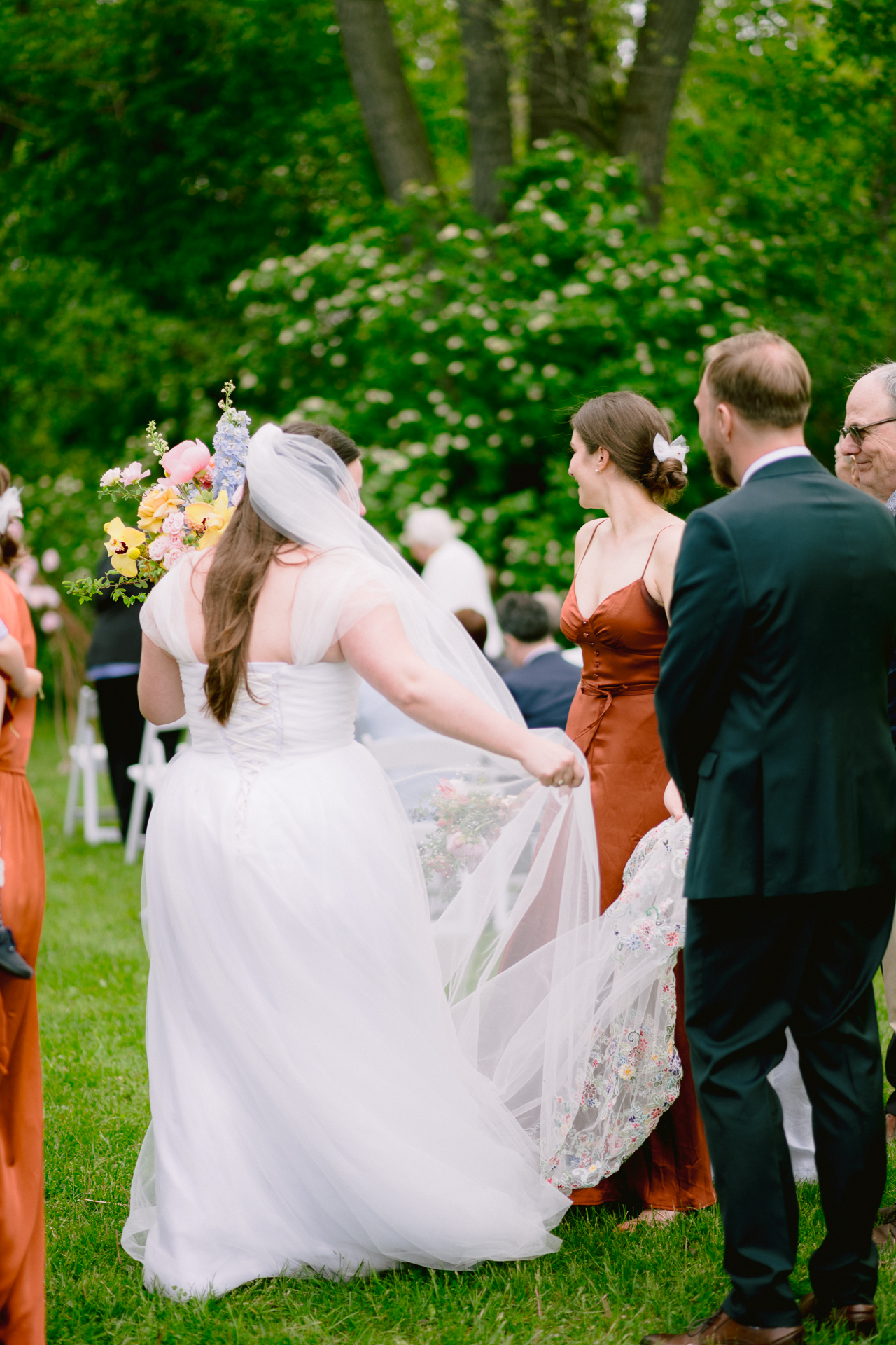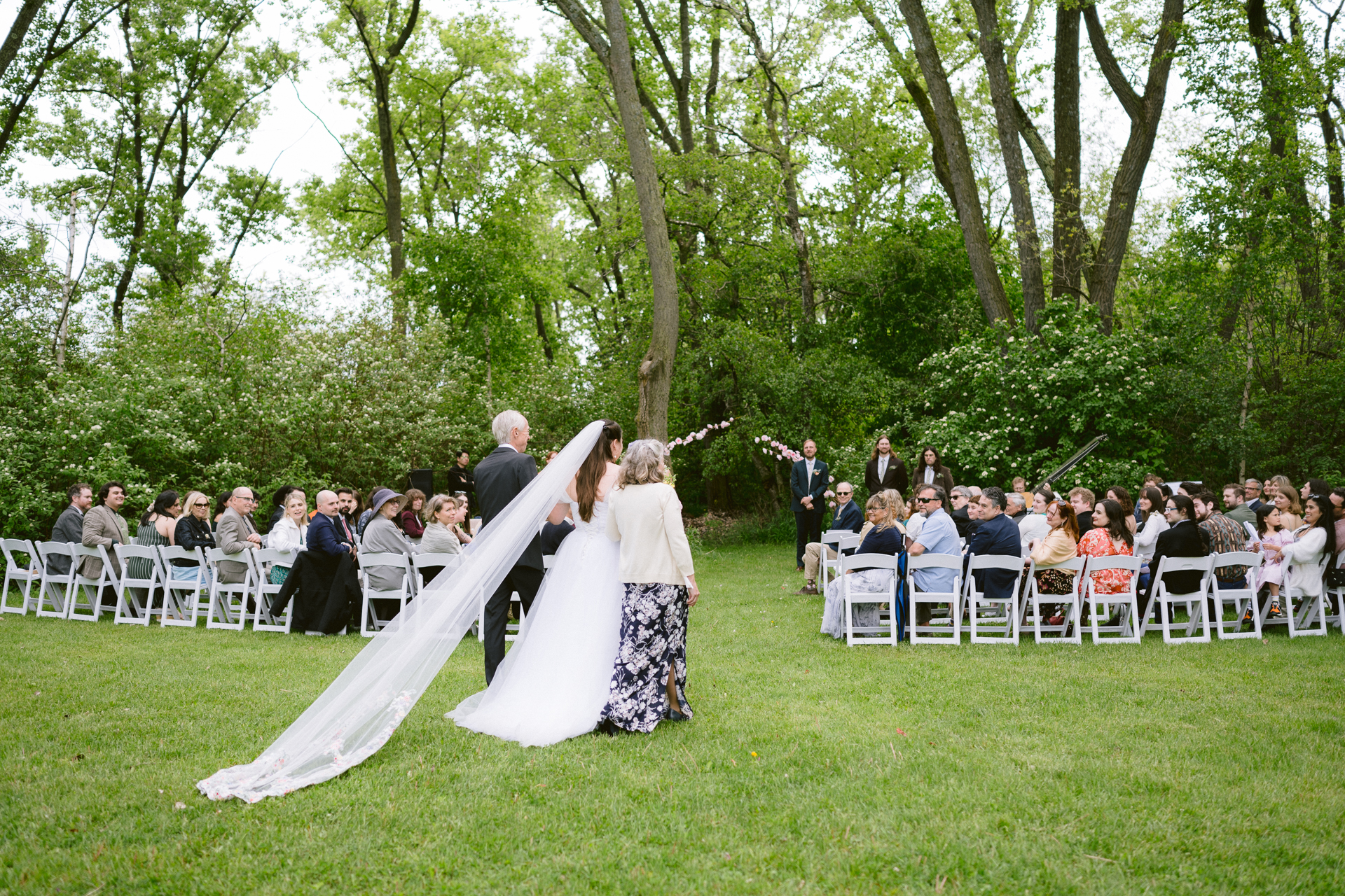 With the rain subsiding, Sam and Arie made the brilliant decision to move the ceremony back outdoors. The lush greenery and serene surroundings of Toronto Island provided the perfect backdrop for their intimate celebration. About 80 guests, all eager and excited, gathered to witness the union of these two wonderful people.