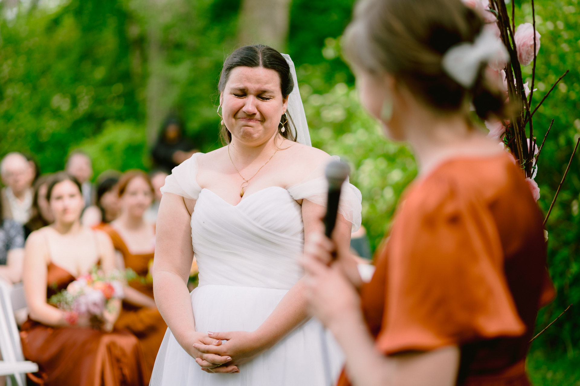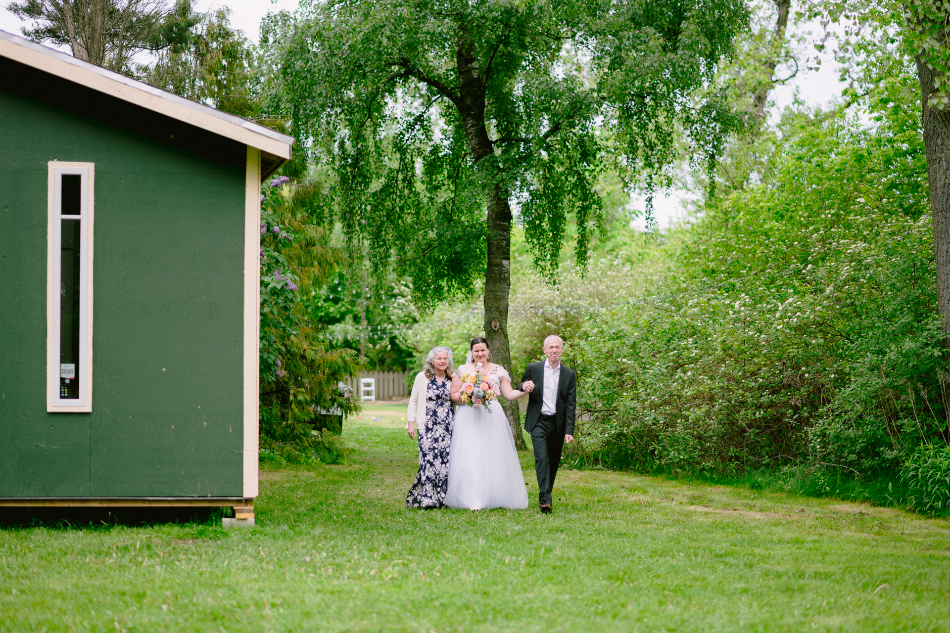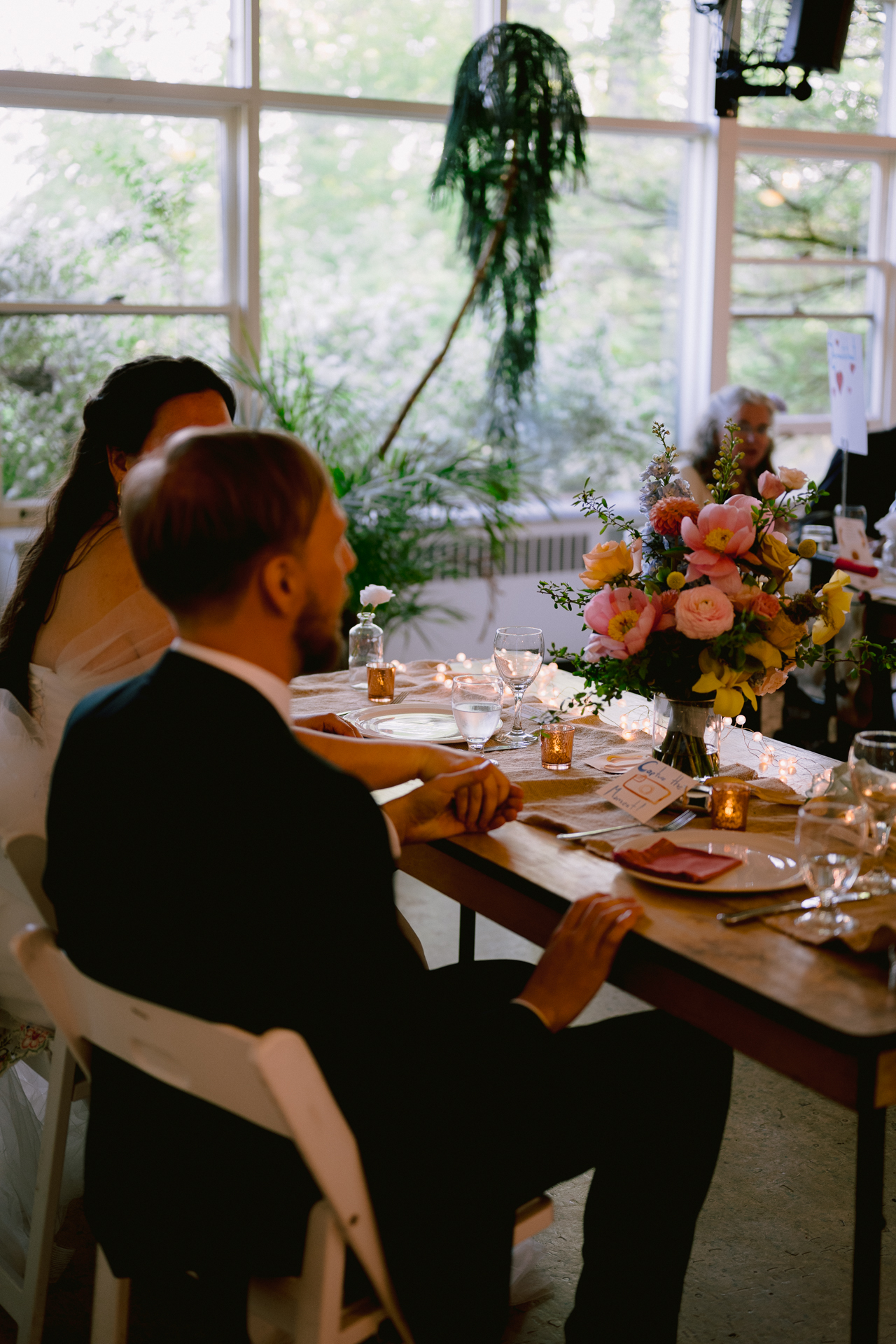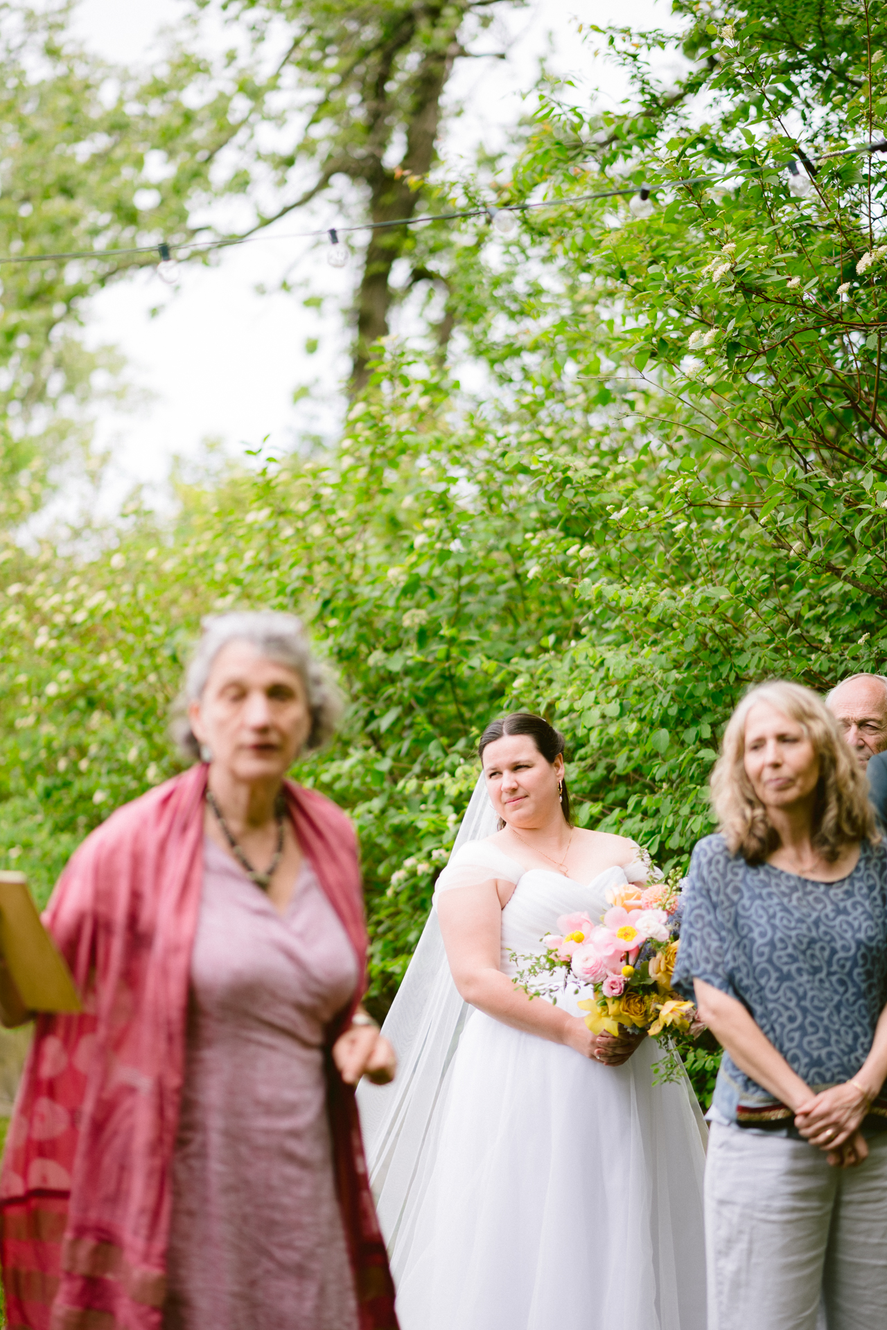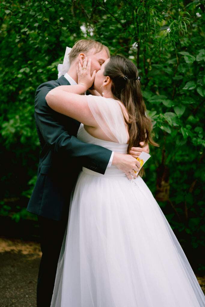 With the rain subsiding, Sam and Arie made the brilliant decision to move the ceremony back outdoors. The lush greenery and serene surroundings of Toronto Island provided the perfect backdrop for their intimate celebration. About 80 guests, all eager and excited, gathered to witness the union of these two wonderful people.