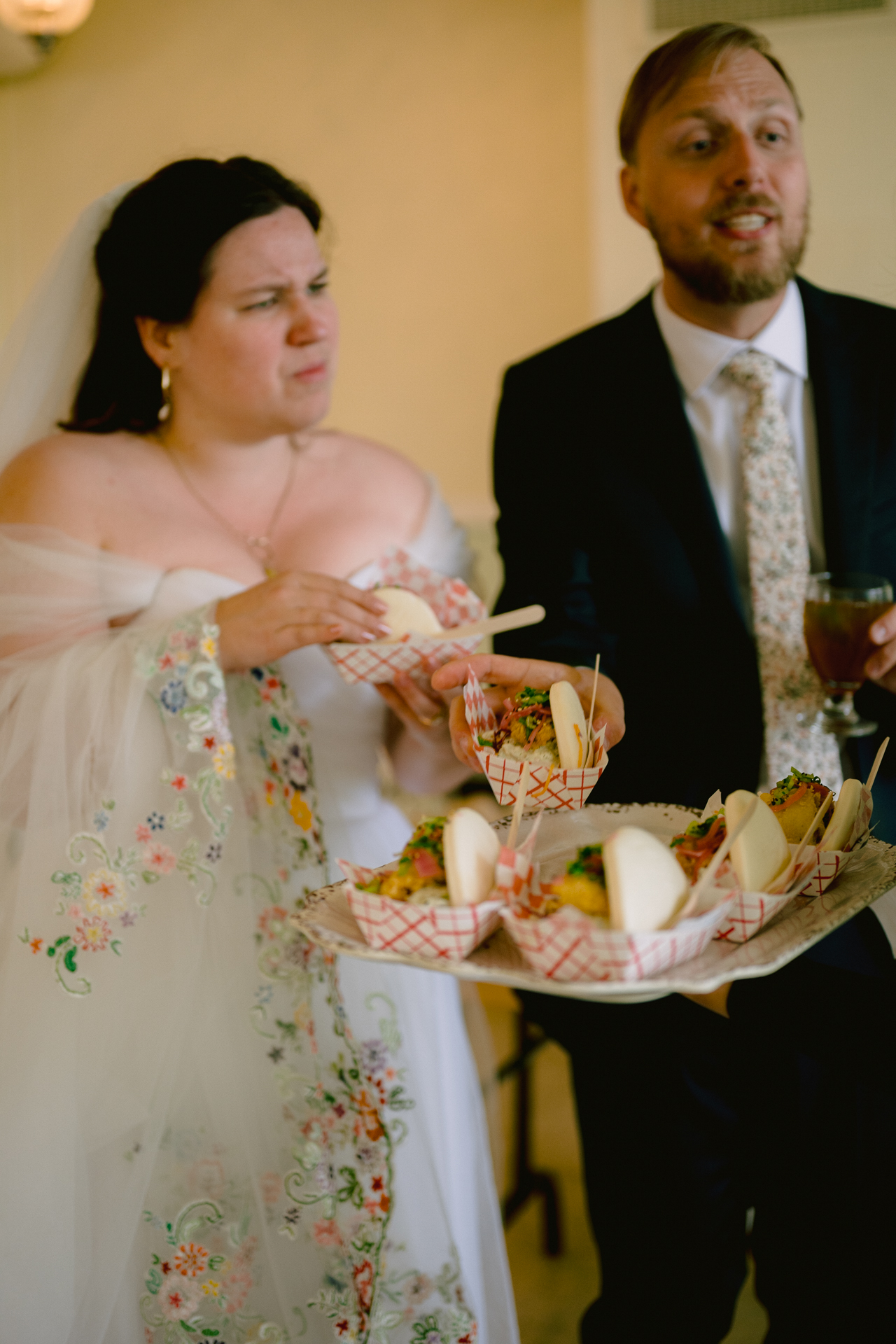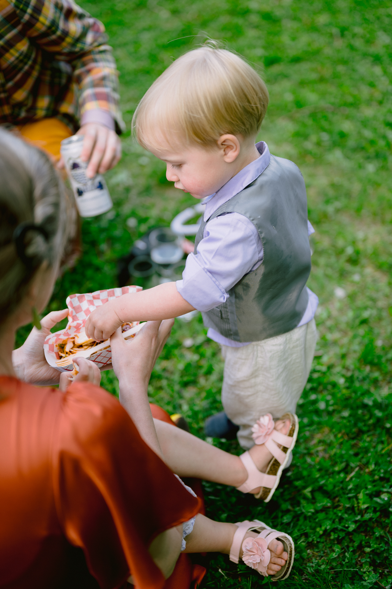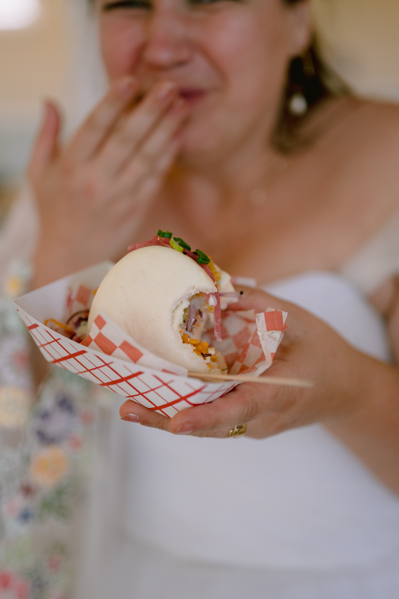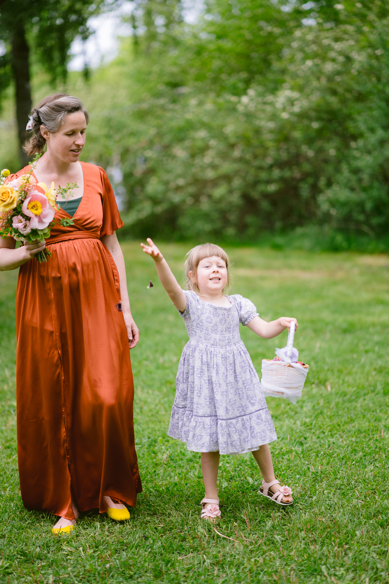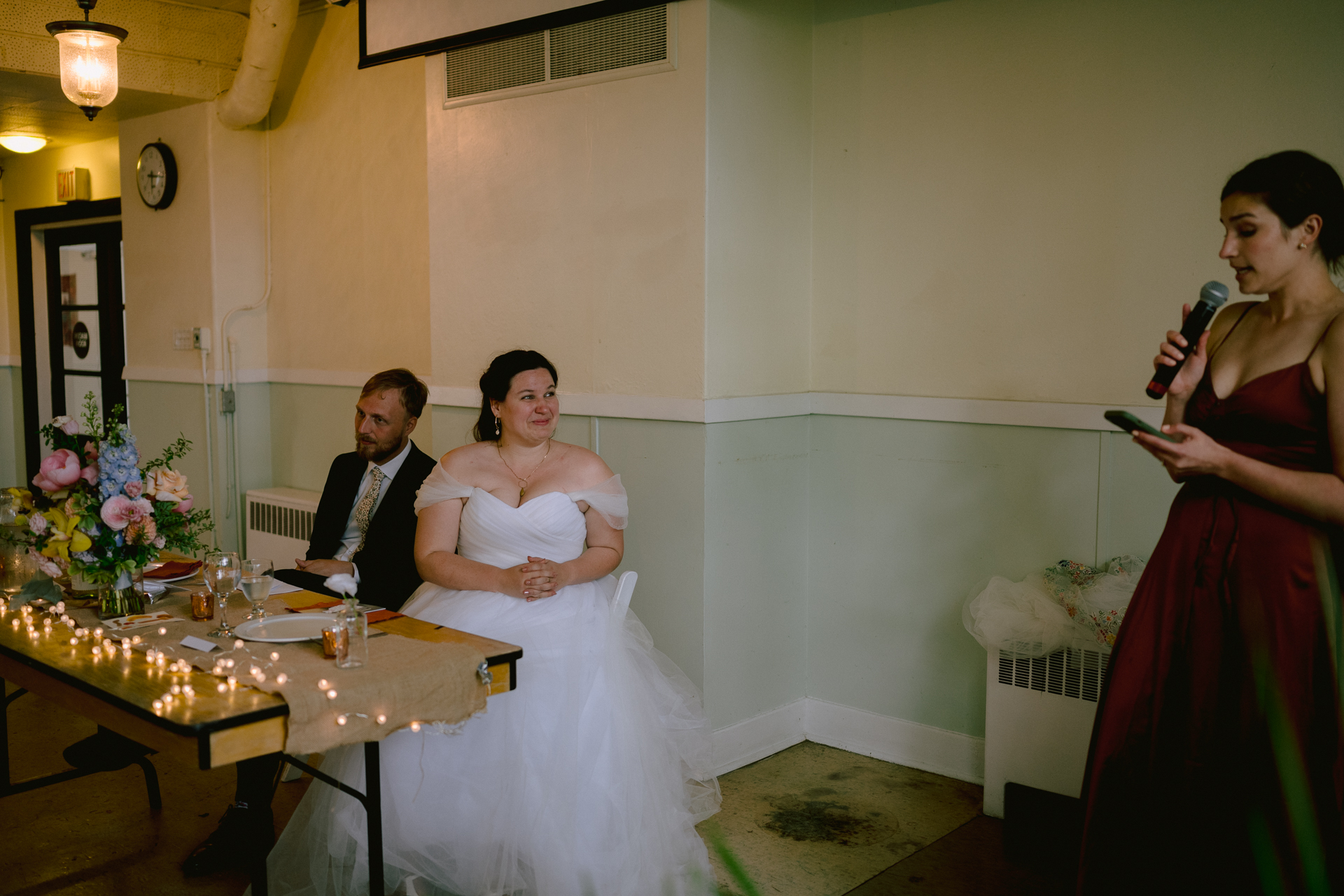 With the rain subsiding, Sam and Arie made the brilliant decision to move the ceremony back outdoors. The lush greenery and serene surroundings of Toronto Island provided the perfect backdrop for their intimate celebration. About 80 guests, all eager and excited, gathered to witness the union of these two wonderful people.