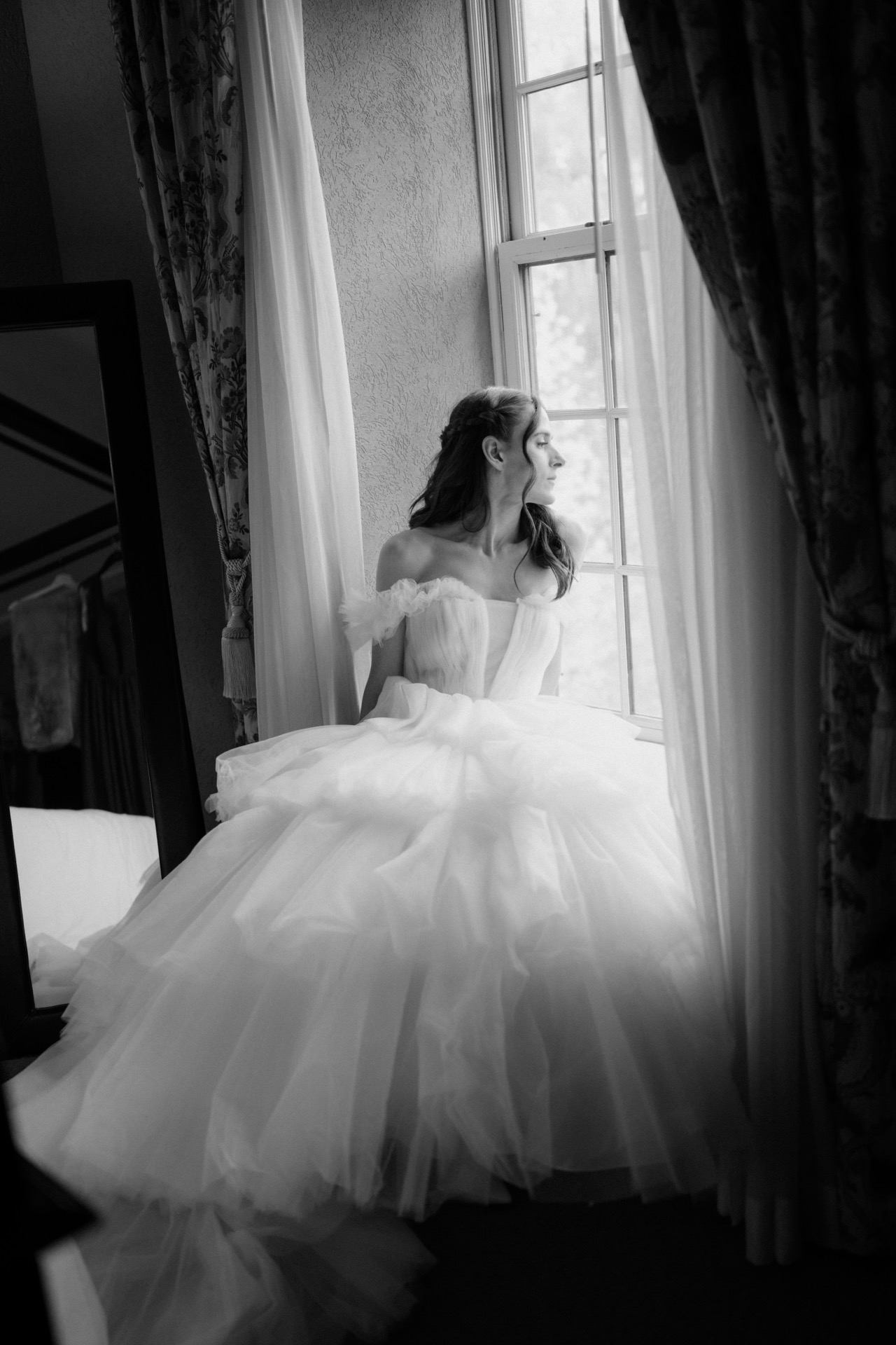 Victoria and Michael opted for a cozy and elegant celebration, surrounded by their closest friends and family. The day began with the bride getting ready in the hotel room provided by the venue, accompanied by her only bridesmaid. Meanwhile, Michael prepared for the big day with his groomsman at his home, just a few minutes from the venue. As a wedding photographer, I always love capturing these quiet, emotional moments before the ceremony, and Victoria’s morning was filled with joyful anticipation.