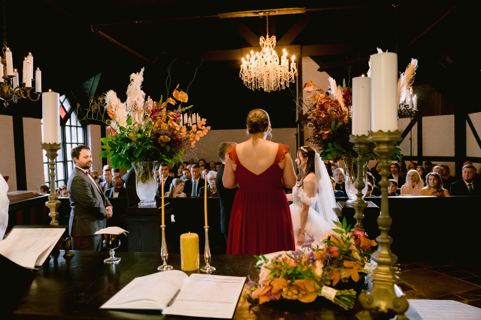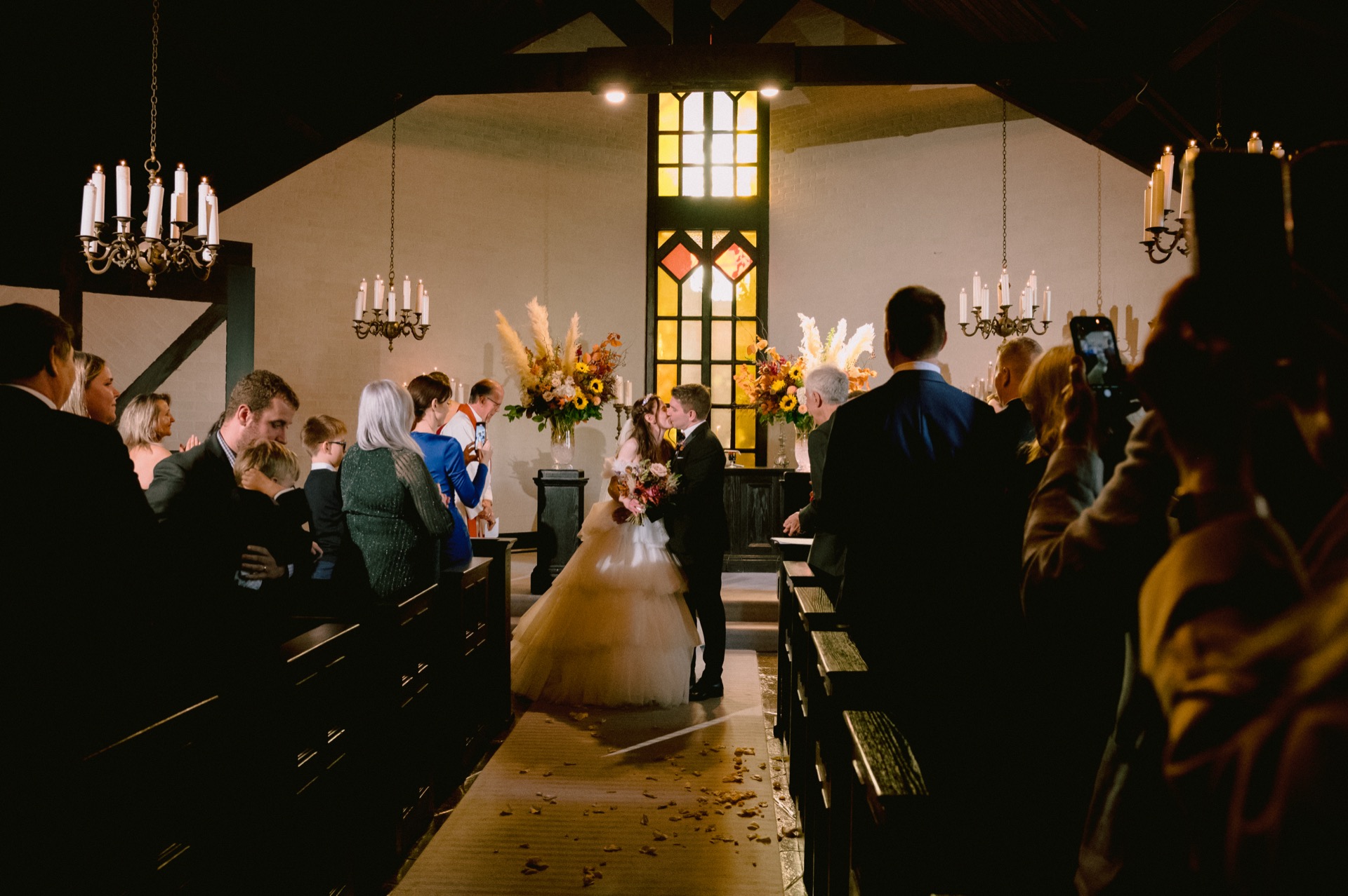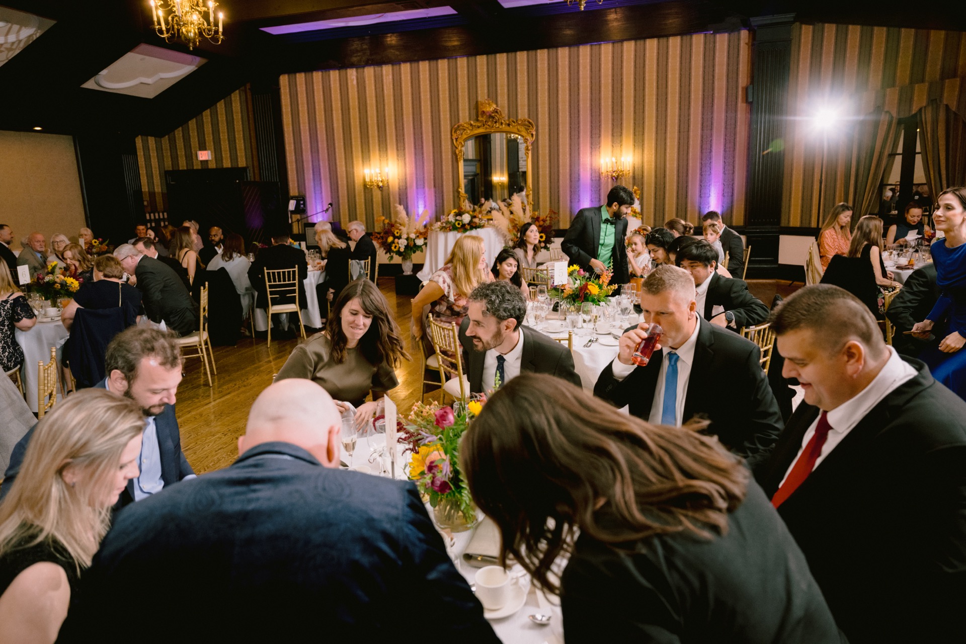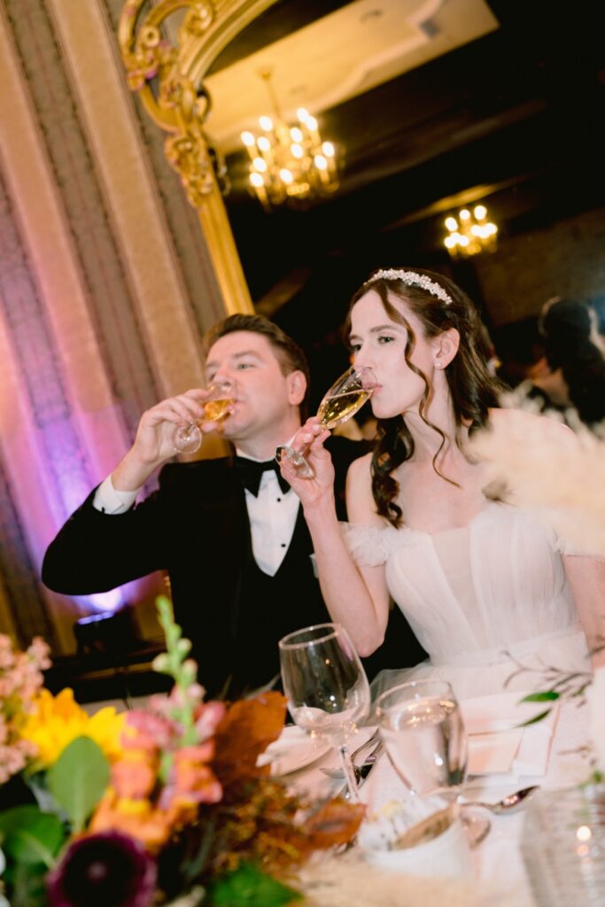 After capturing their stunning portraits, we returned to the venue for cocktail hour and the reception. The cozy indoor setting, adorned with rich fall tones, made the evening feel incredibly warm and inviting. The couple enjoyed heartfelt speeches, delicious food, and plenty of laughter with their loved ones. It was a night filled with celebration and cherished memories.