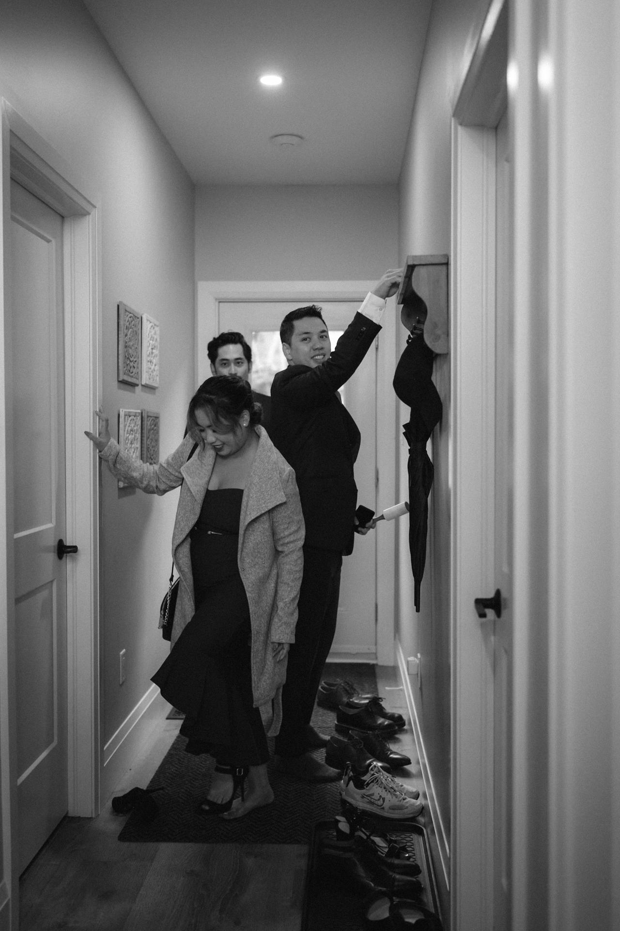 The ceremony took place in the walkout basement of the Airbnb, a perfect setting for their intimate vows. The soft light filtering through the windows emphatically highlighted the couple’s radiant happiness. Surrounded by the warmth of family and friends, Angel and Dom exchanged vows, their words echoing with love and promise. As a photographer for weddings, it was an honor to capture these genuine emotions while immortalizing the beginning of their new journey together.