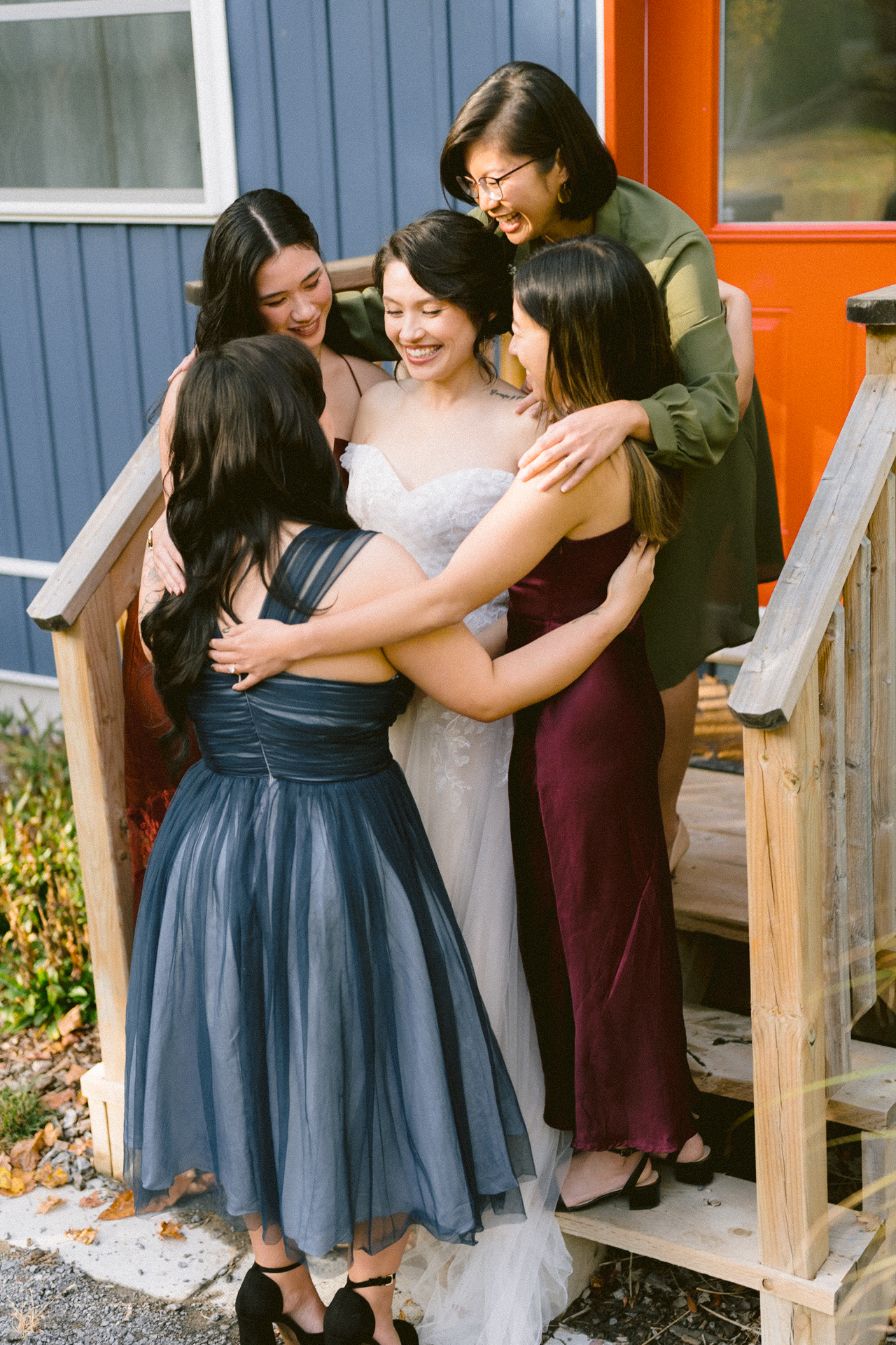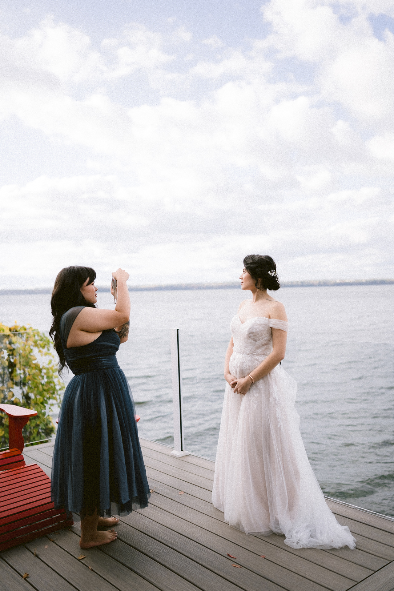 Amidst the golden hues of autumn, Angel prepared for her big day at the picturesque Picton Bay Hideaway. The cozy ambiance of the Airbnb, coupled with her sister’s skilled hands, created an atmosphere filled with beauty and anticipation. As a wedding photographer, capturing these tender, behind-the-scenes moments is always a privilege. The love and excitement were palpable, making each shot a treasured memory in the making.