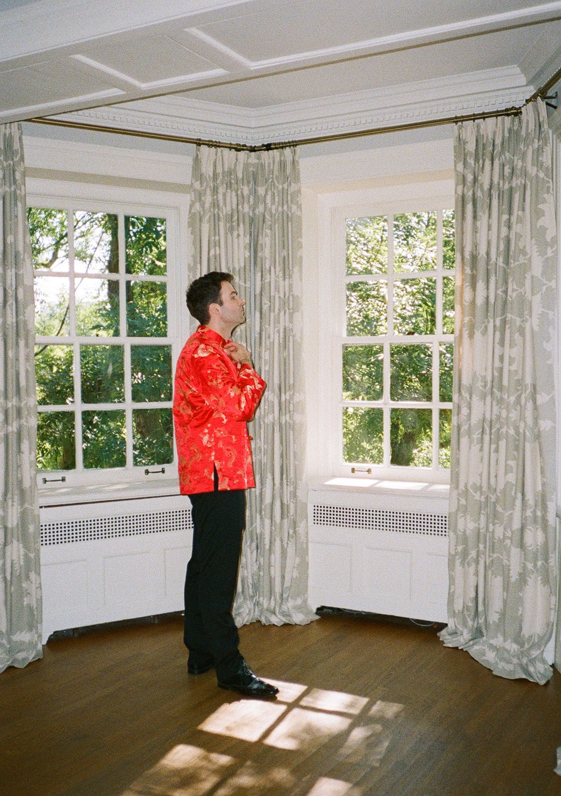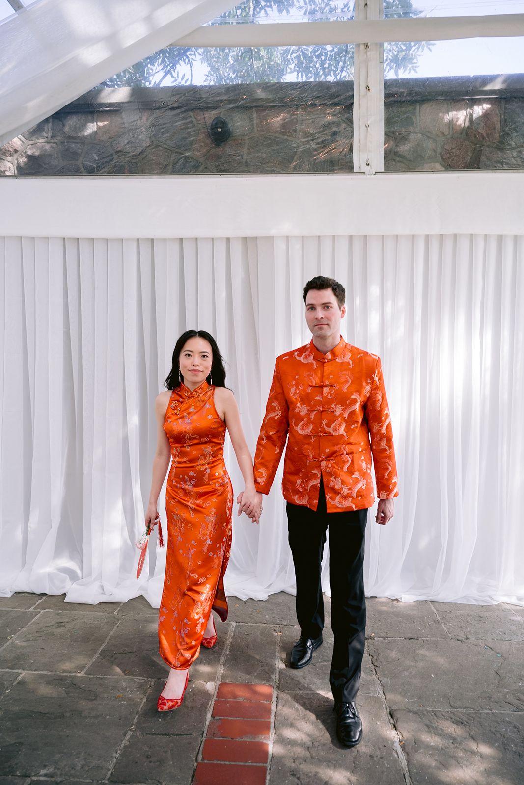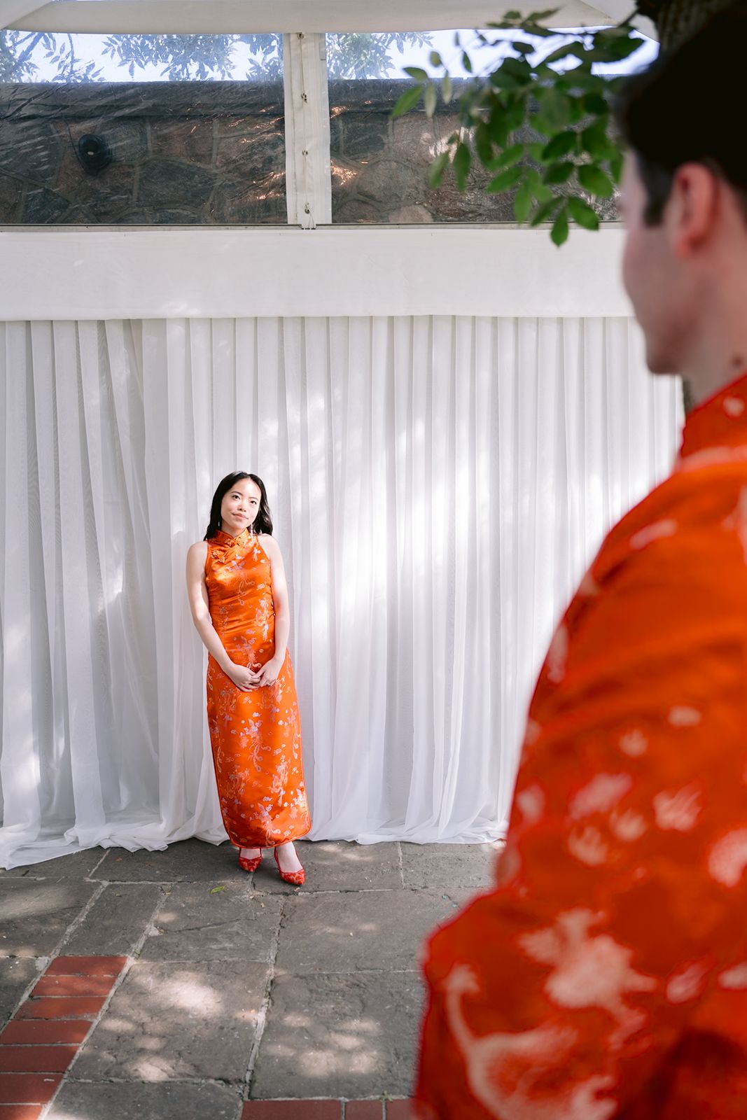 Following the ceremony, the day shifted into a celebration of heritage. Nancy and Adrian stepped away to change into their traditional Chinese outfits, a transition that brought a new layer of depth to their Graydon Hall Manor wedding. Nancy’s red dress was striking—a bold, symbolic color in Chinese culture representing joy and good luck. Seeing the vibrant red against the historic, muted tones of the manor was a beautiful visual reminder of how they carry their history into their new life together.