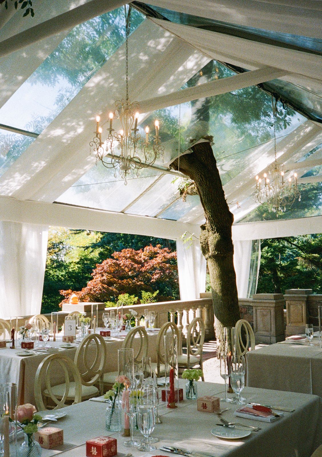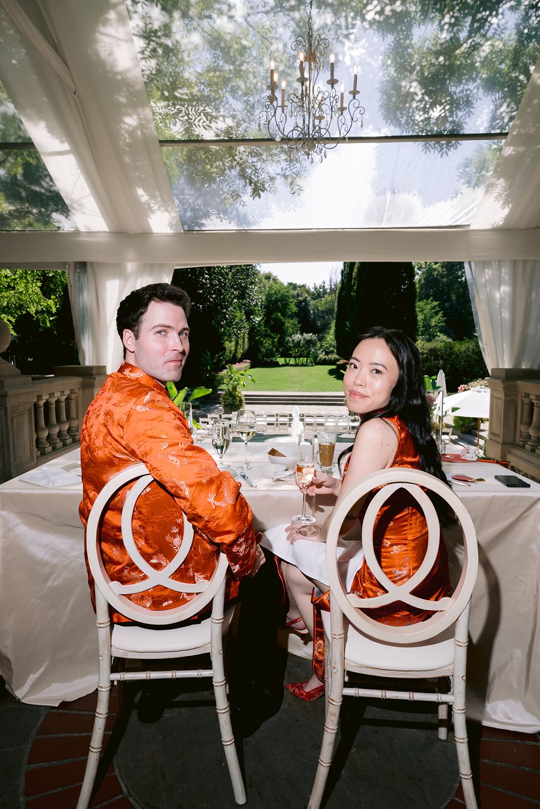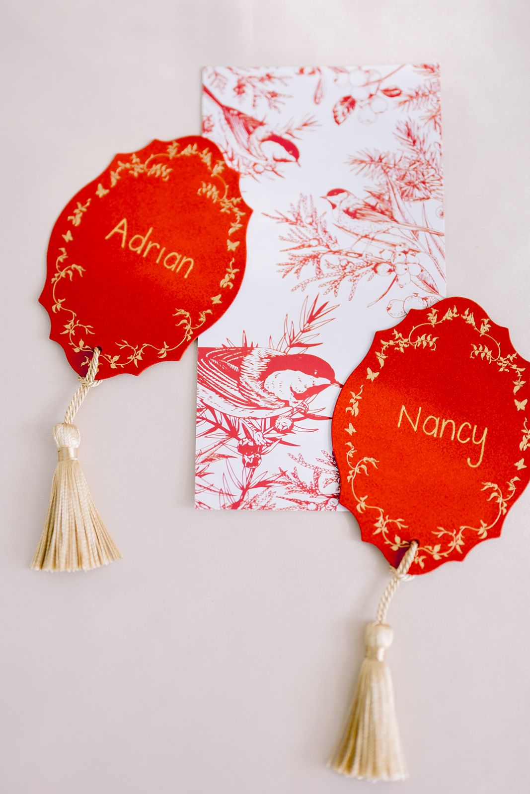 Nancy and Adrian also incorporated their heritage into the reception decor. Beyond the standard table numbers, they displayed the titles of parents and grandparents in Chinese characters. It was a subtle, sophisticated way to honor their elders while maintaining the editorial aesthetic of the day.