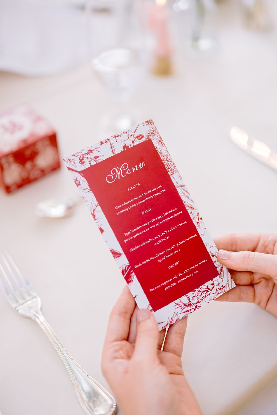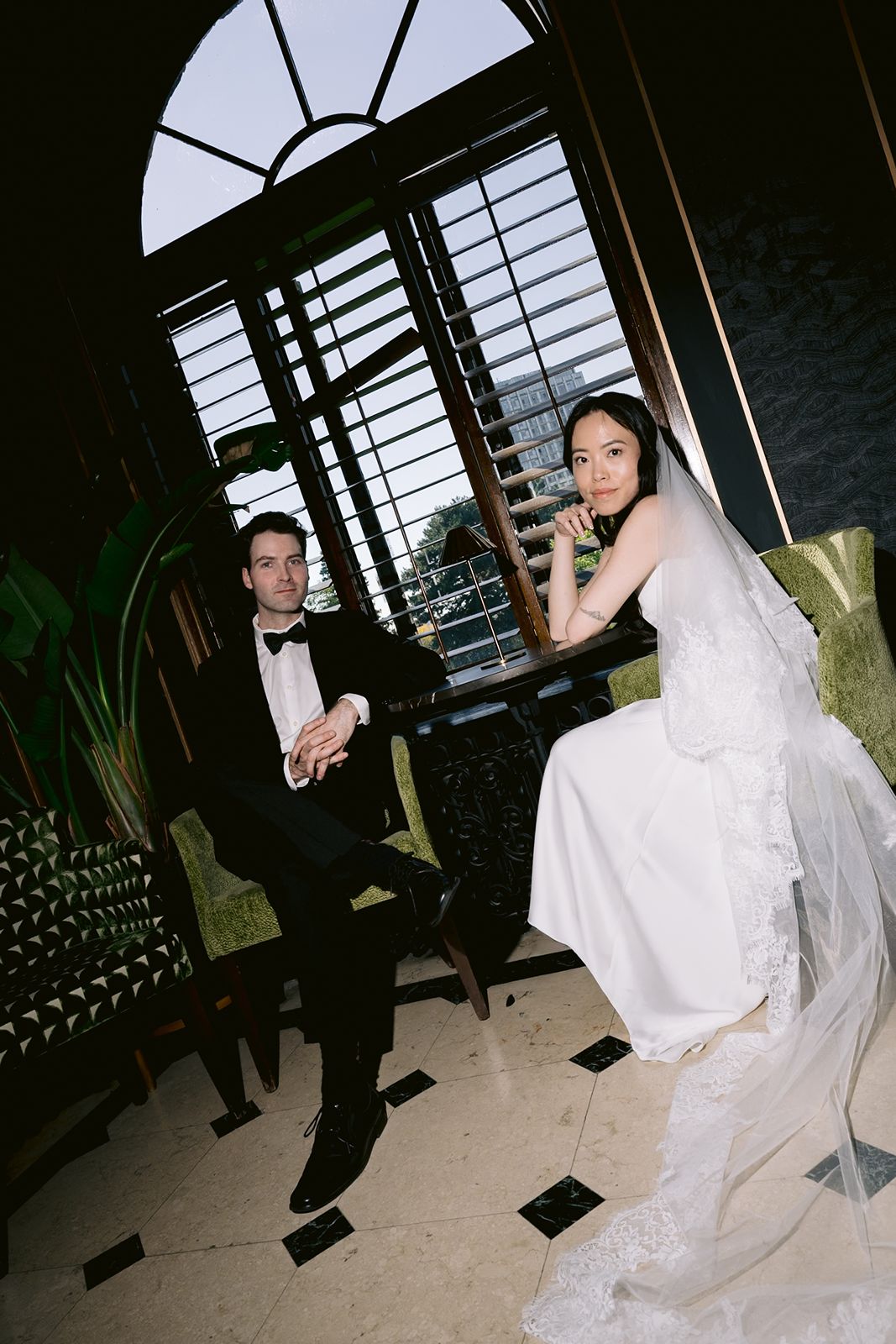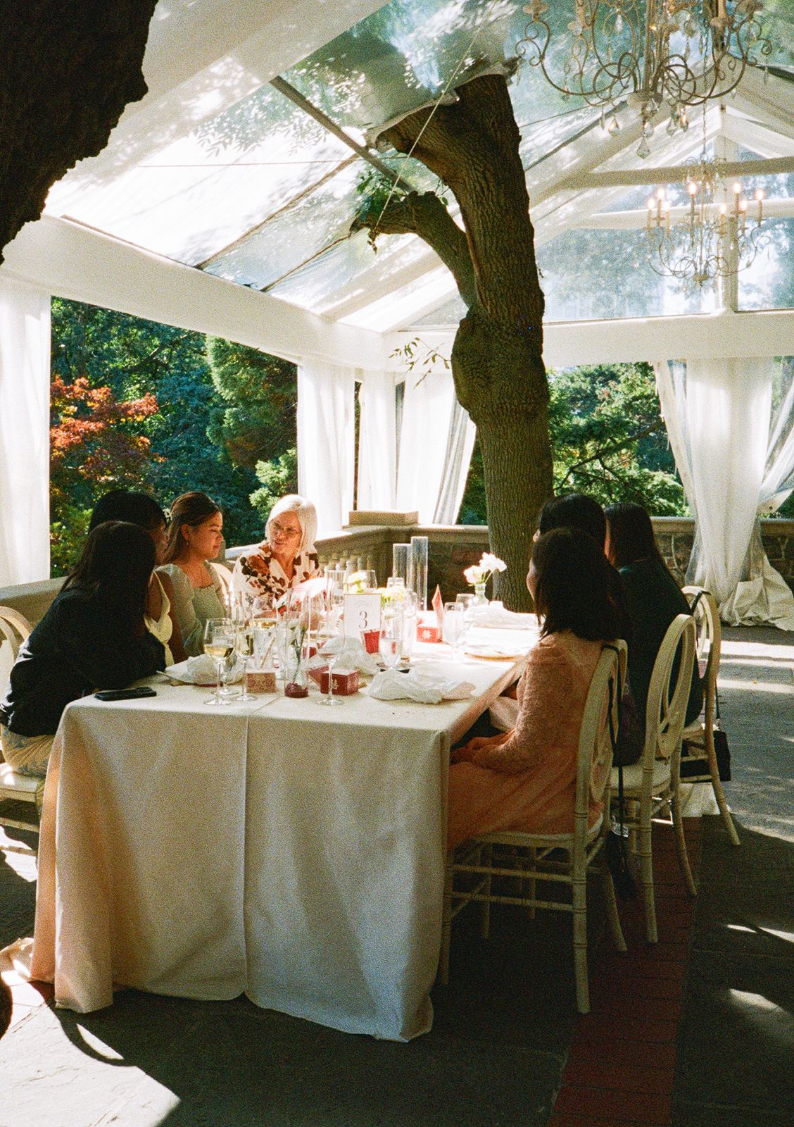Nancy and Adrian also incorporated their heritage into the reception decor. Beyond the standard table numbers, they displayed the titles of parents and grandparents in Chinese characters. It was a subtle, sophisticated way to honor their elders while maintaining the editorial aesthetic of the day.