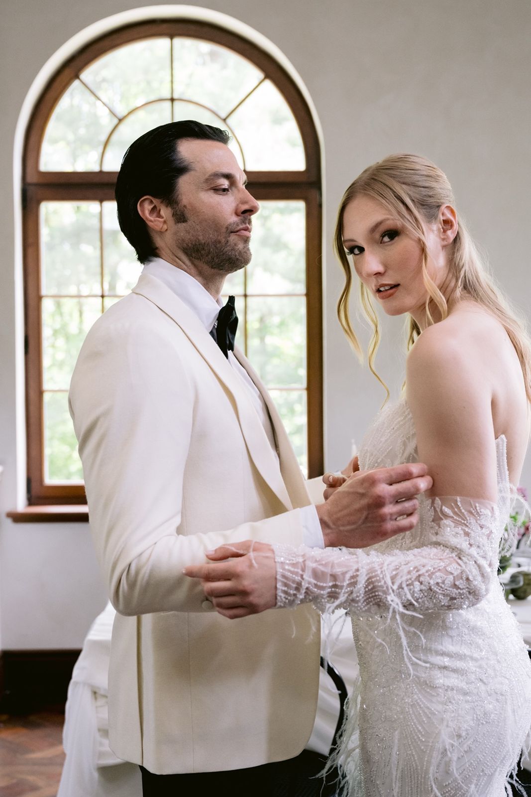 I moved Catherina into the natural light of a grand window, capturing the unscripted moments of reflection before she stepped outside. This part of the day is about setting the visual tone: a blend of high-fashion editorial flair and the honest, quiet heartbeats of a woman about to marry her best friend.