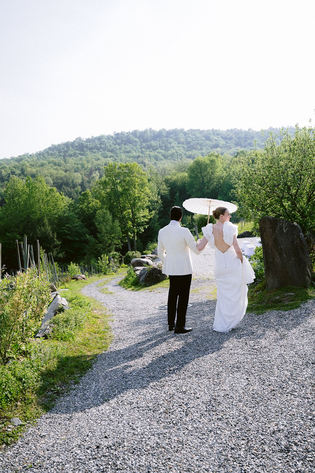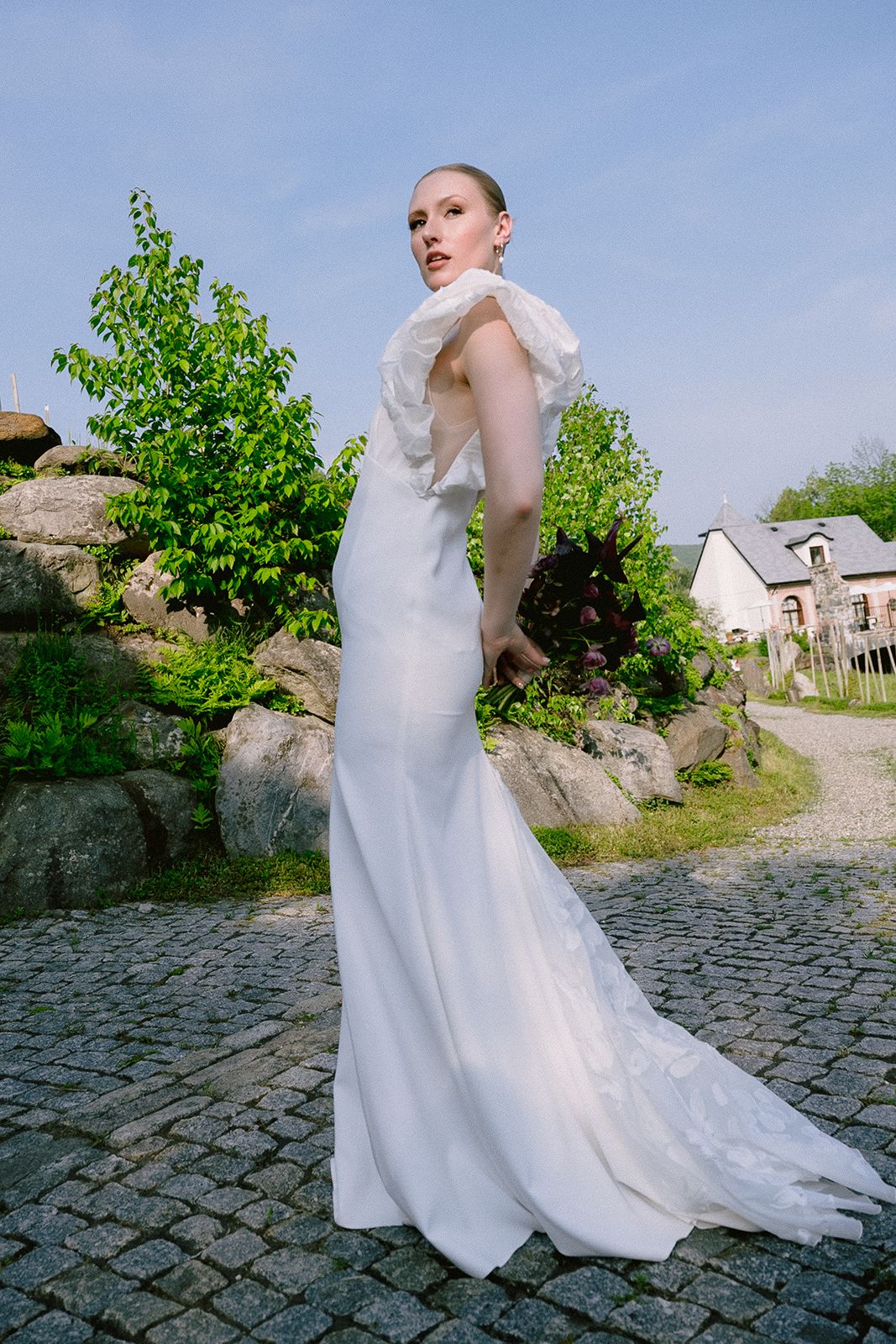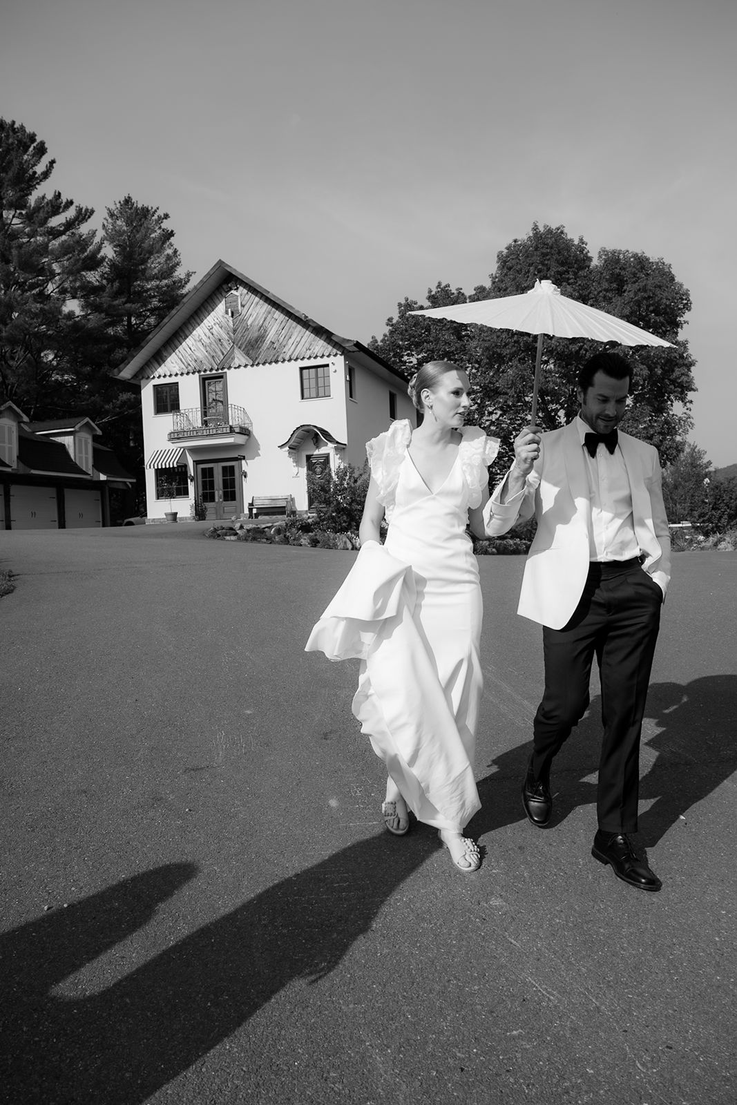 I directed the couple through movements that felt unforced and elegant, chasing the “golden hour” light as it dipped behind the estate buildings. We utilized the long shadows and the warm, honey-colored glow of the Montreal summer to create imagery that is both artful and honest. Catherina and Sebastian moved through the vineyards with an easy grace, their love story reflected in the enduring stone of the venue.