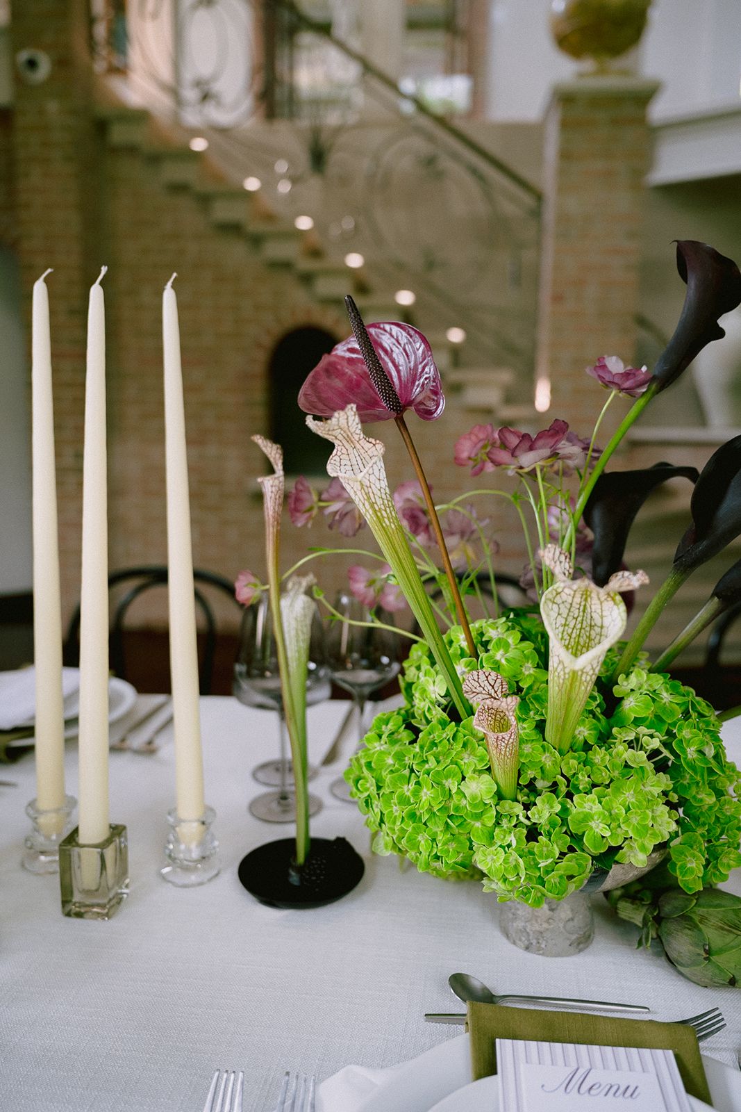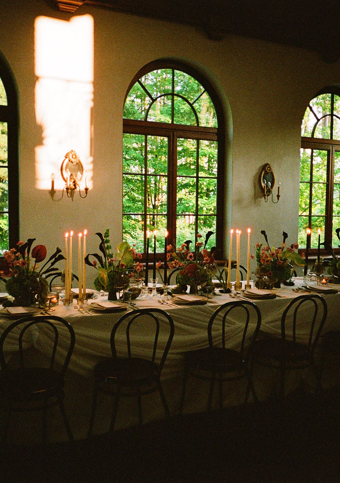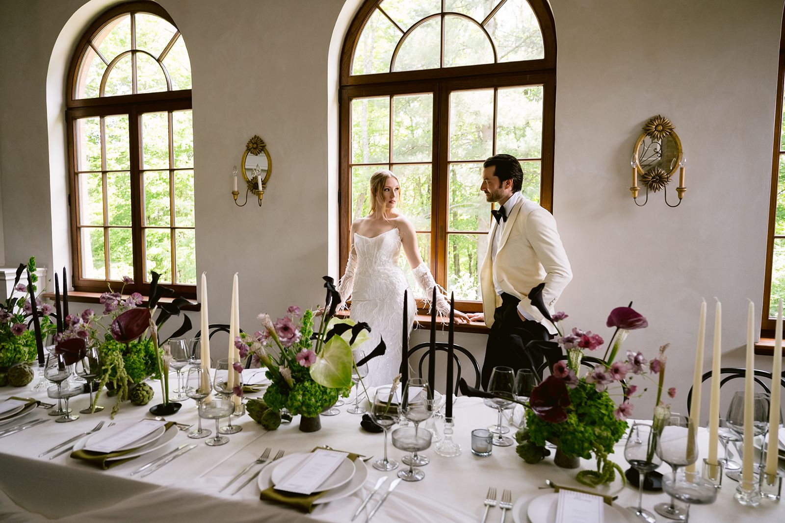 The table setup was a curated display of fine linens, tall candles, and exquisite floral arrangements that felt both opulent and intimate. Every corner of the room was a vignette of elegance, designed for slow conversation and the appreciation of beauty. It was the perfect conclusion to a day that felt like a European dream transported to Quebec for this Chateau Ste Agnes wedding.