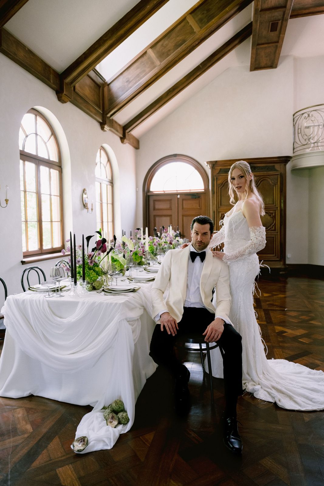 As evening fell, the celebration transitioned indoors for a reception that defined sophisticated luxury. The indoor space at the Chateau, with its vaulted ceilings and historical charm, provided the high-contrast environment I love for my fine-art style.