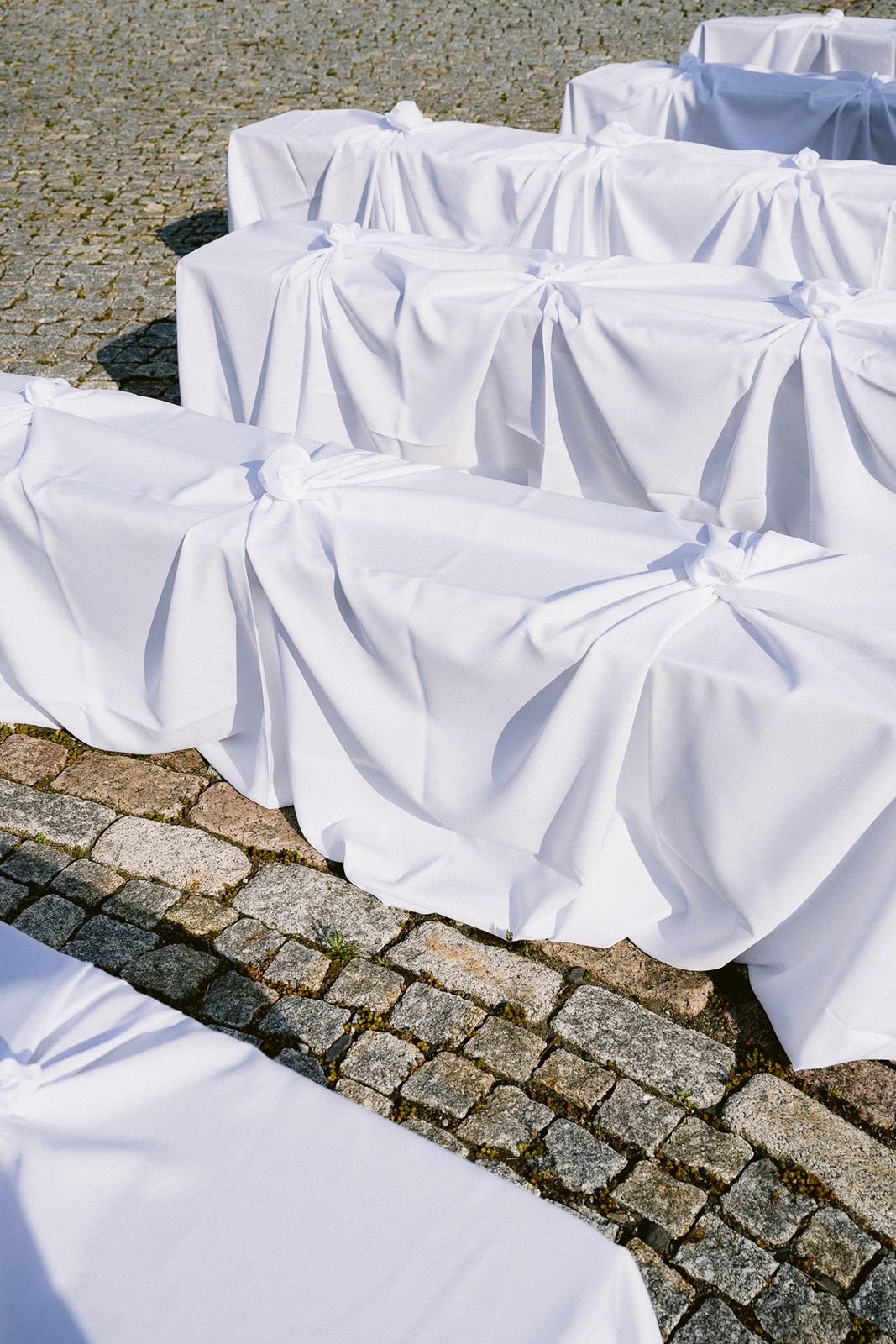 As the June sun warmed the stone steps, the setting felt remarkably private. Without the distraction of a large crowd, the focus remained entirely on the connection between Catherina and Sebastian. I stayed back, documenting the way the wind caught the veil and the way Sebastian’s hand rested on Catherina’s. It was a scene of pure, visual poetry, framed by the timeless architecture of the Chateau.